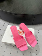 SQUARE-TOE MEDIUM HEEL MULES IN PINK CALFSKIN LOGO EMBOSSED