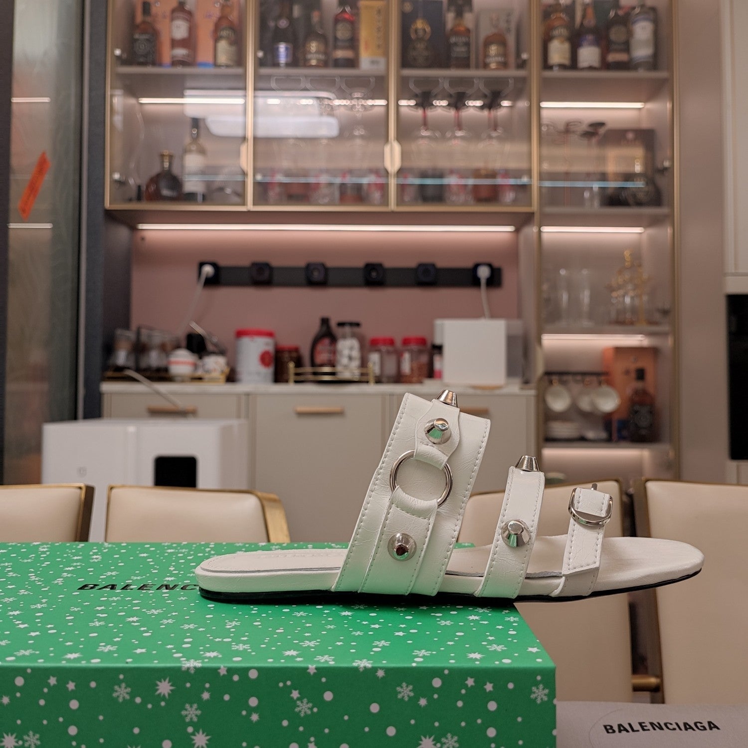 STRAPPY FLAT SANDALS IN WHITE STUDDED WAX-OIL SHEEPSKIN
