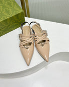 STRAPPY FLAT SLINGBACK IN BEIGE CREAM GLOSSY CALFSKIN