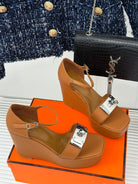 WEDGES SANDALS TAWNY LAMBSKIN