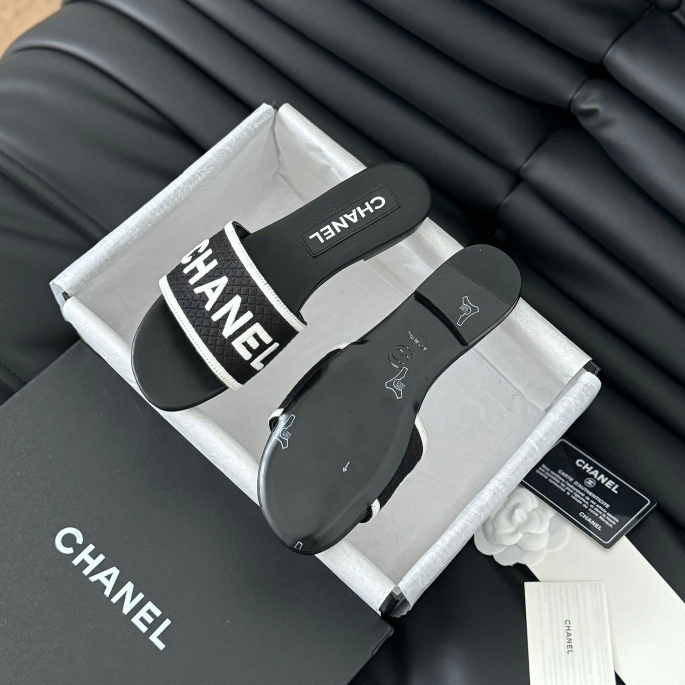 Woven Embroidered Letter Slippers Black White