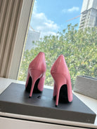 ZIPPER POINTED-TOE HIGH PUMPS IN BUBBLEGUM PINK SHINY LAMBSKIN