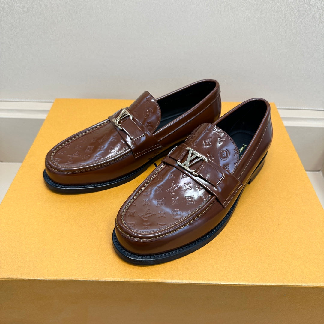LV MAJOR LOAFER GLOSSY CHOCOLATE BROWN EMBOSSED CALFSKIN