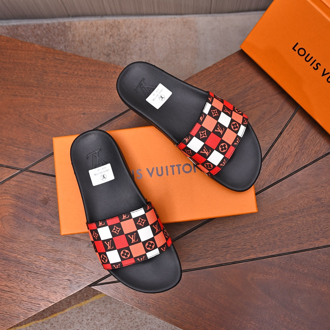 LV MULE RED MIX ORANGE DAMIER MONOGRAM CALFSKIN