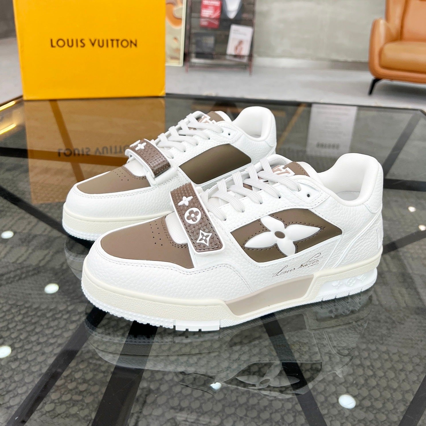 LV TRAINER IN WHITE MIX CHOCOLATE BROWN CALFSKIN