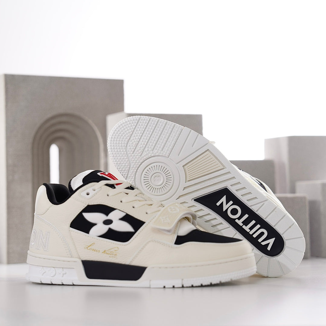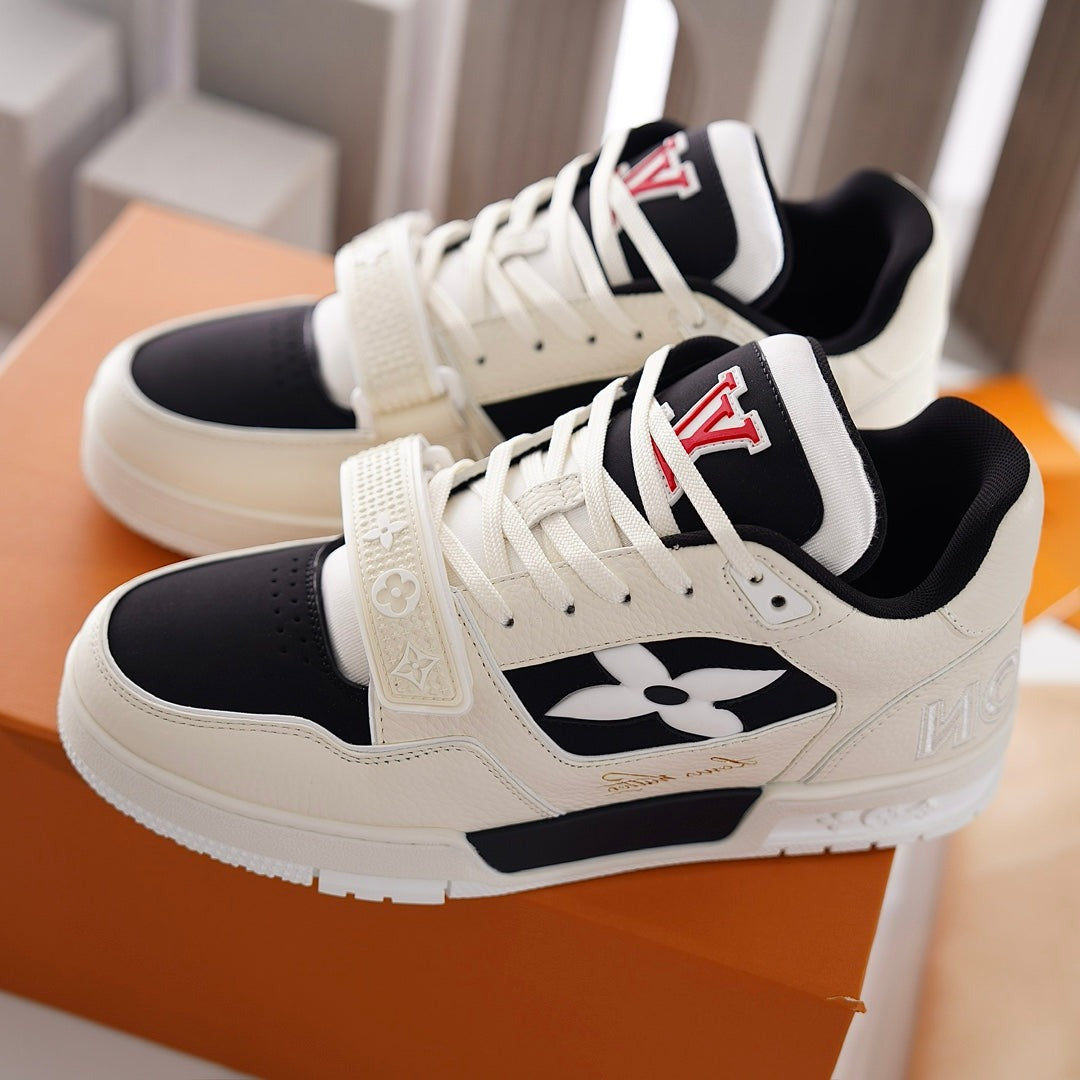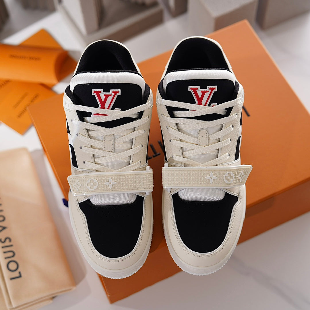 LV TRAINER SNEAKER WHITE CALFSKIN MIX BLACK SUEDE
