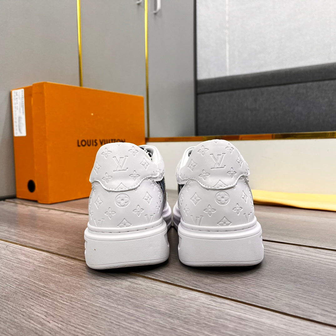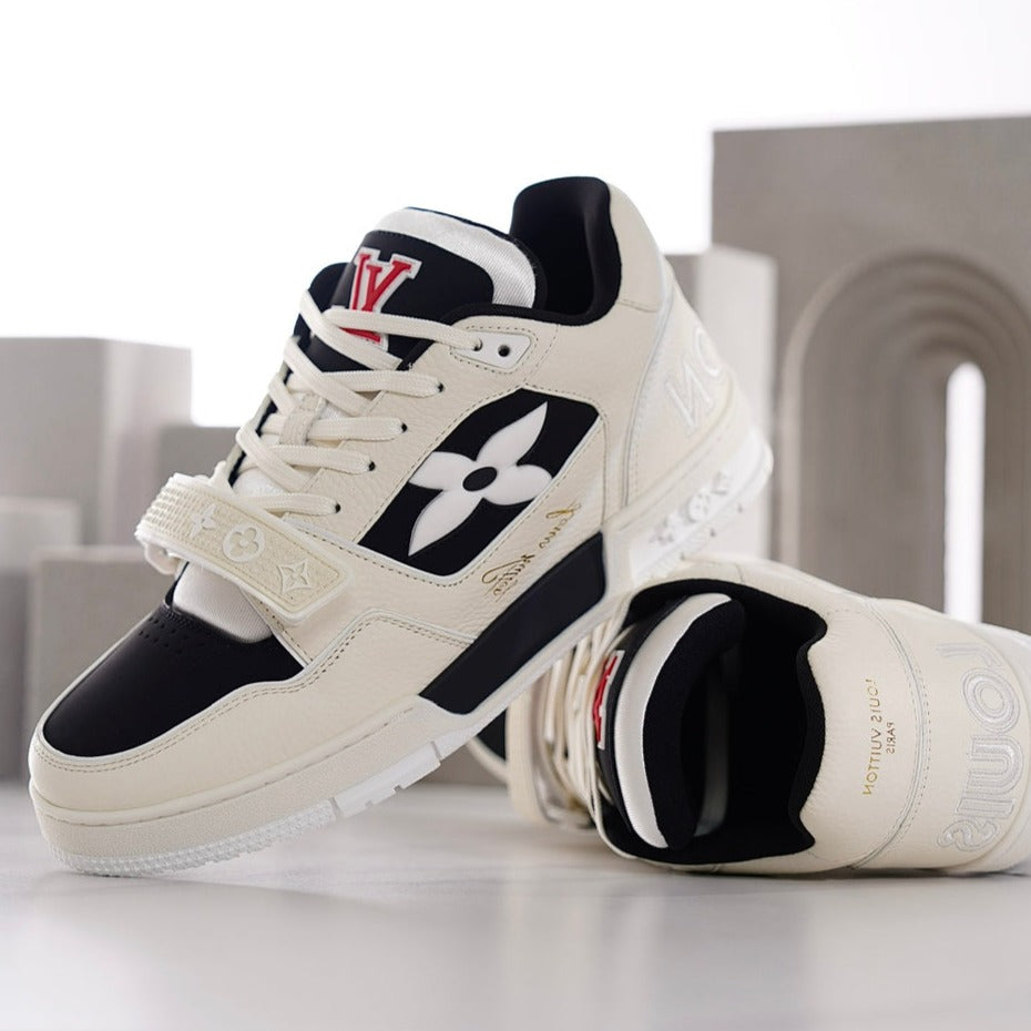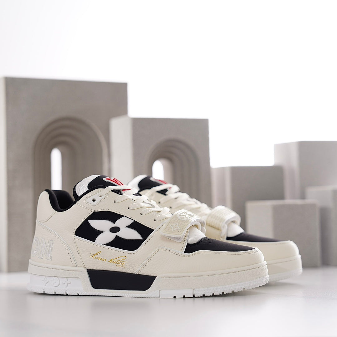 LV TRAINER SNEAKER WHITE CALFSKIN MIX BLACK SUEDE