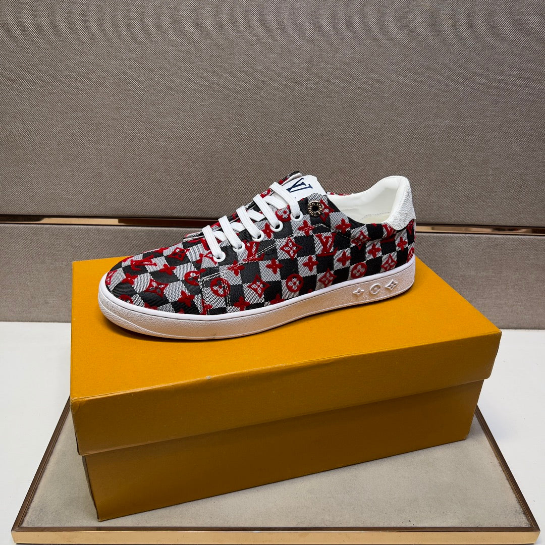 LV TRAINER BLACK MIX RED AND GREY DAMIER BREATHABLE FABRIC
