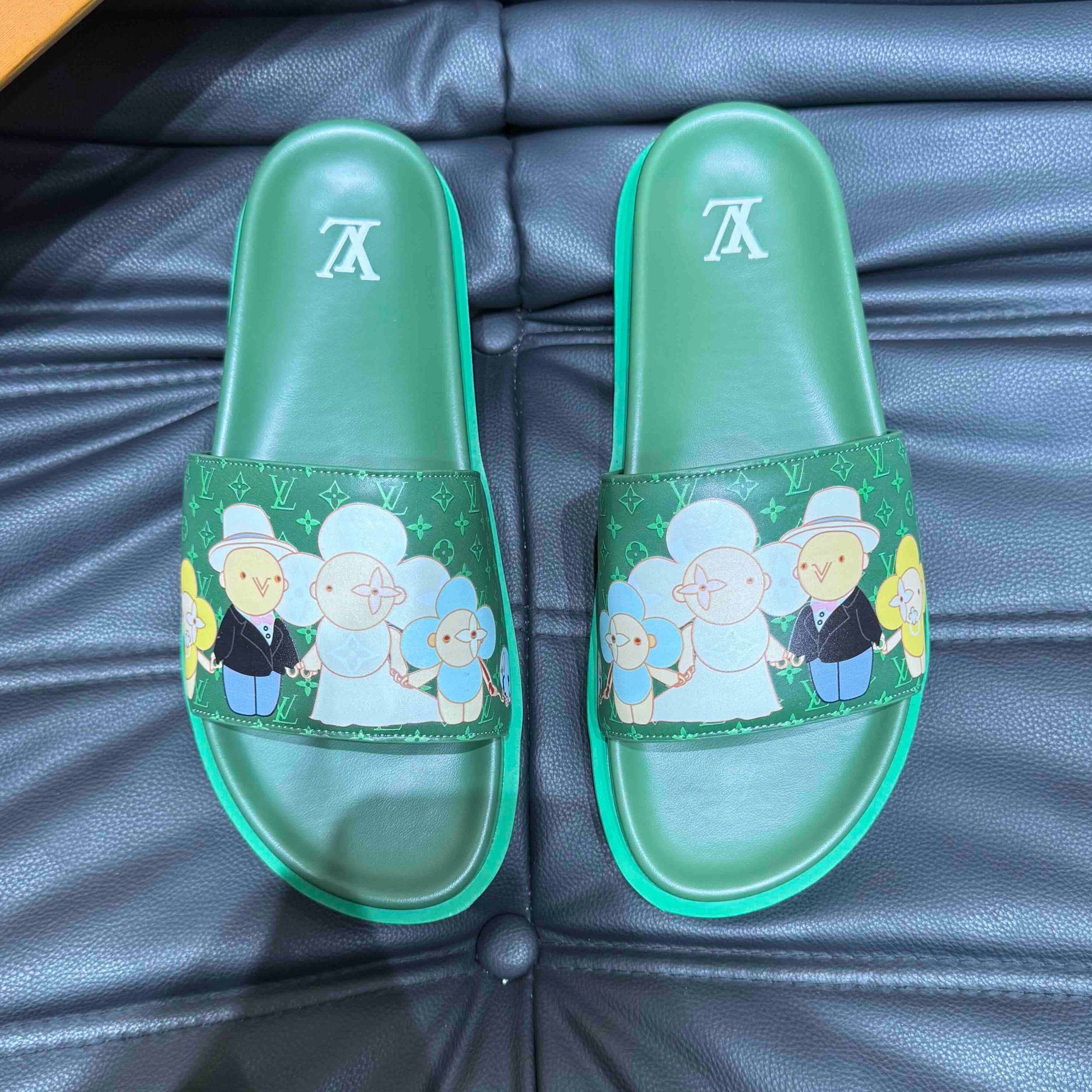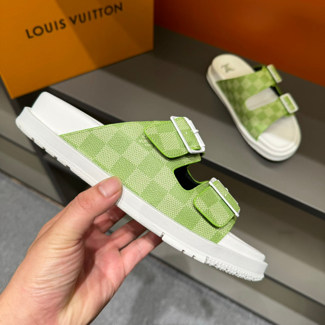 LV VELCRO SLIPPERS PEAR GREEN DAMIER MONOGRAM CALFSKIN