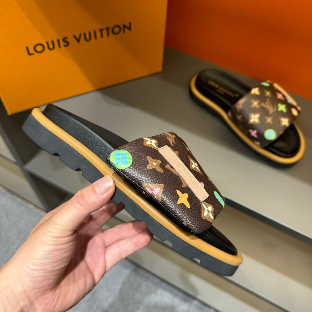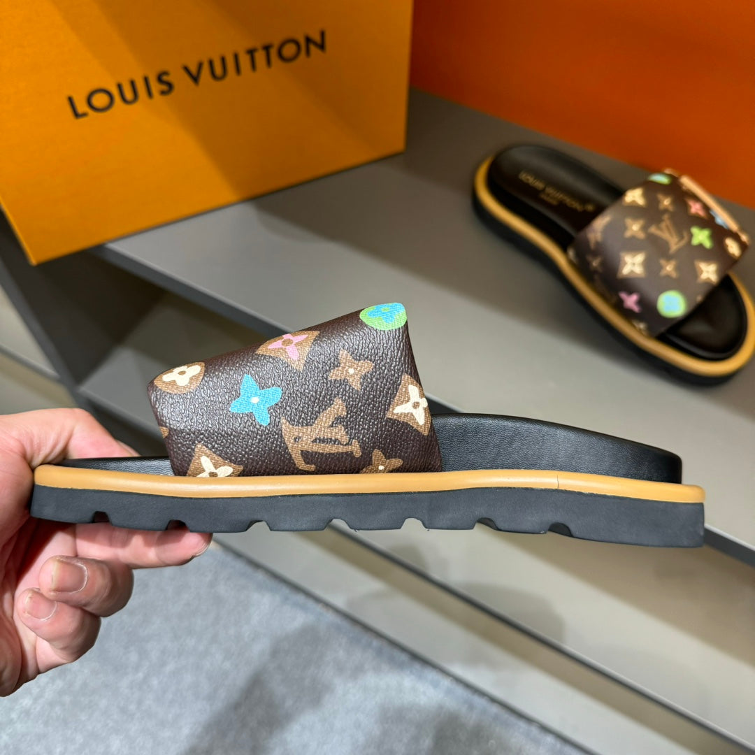 LV SLIPPERS IN CHOCOLATE BROWN MONOGRAM CALFSKIN