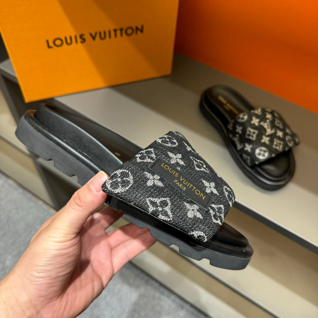 LV DAD SANDAL BLACK MONOGRAM DENIM