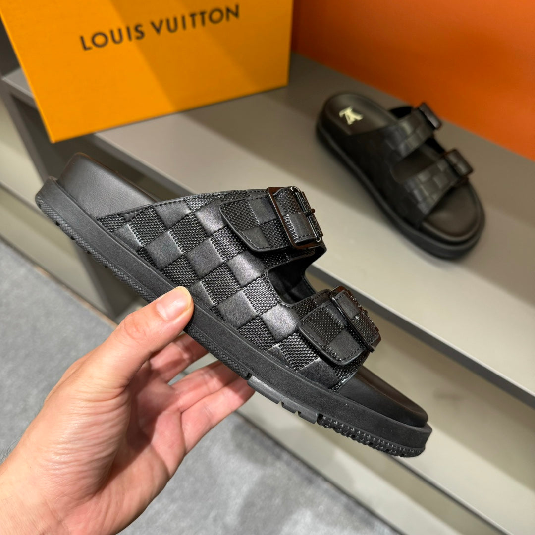 LV DAD SANDAL BLACK DAMIER CALFSKIN