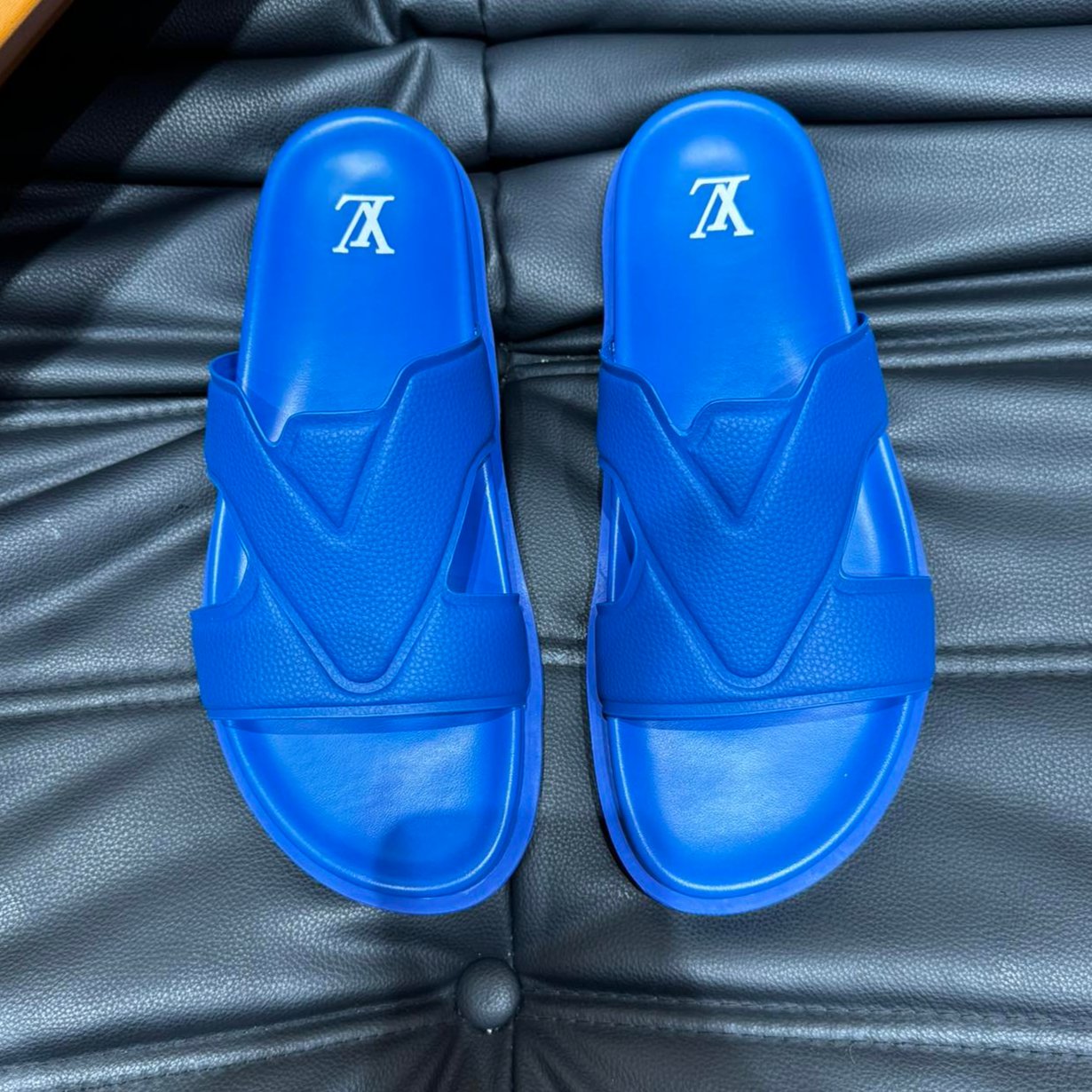 LV OASIS MULE IN COBALT BLUE CALFSKIN