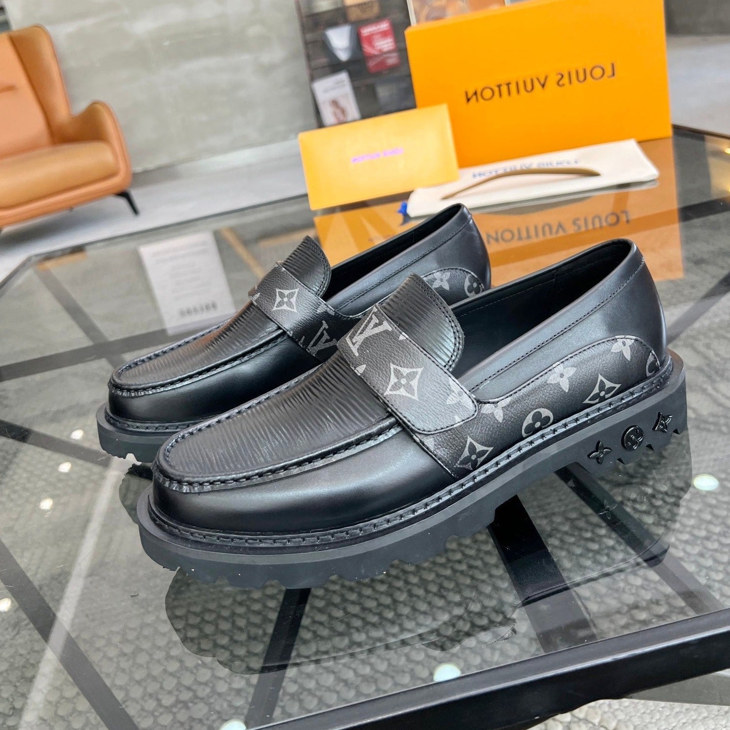 LV LOAFERS BLACK CALFSKIN WITH MONOGRAM STRAP