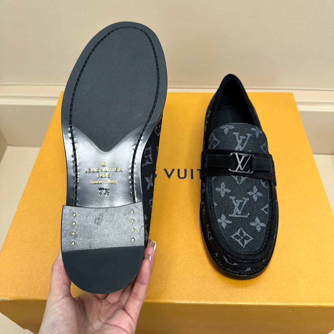 LV MAJOR LOAFERS IN BLACK MONOGRAM DENIM