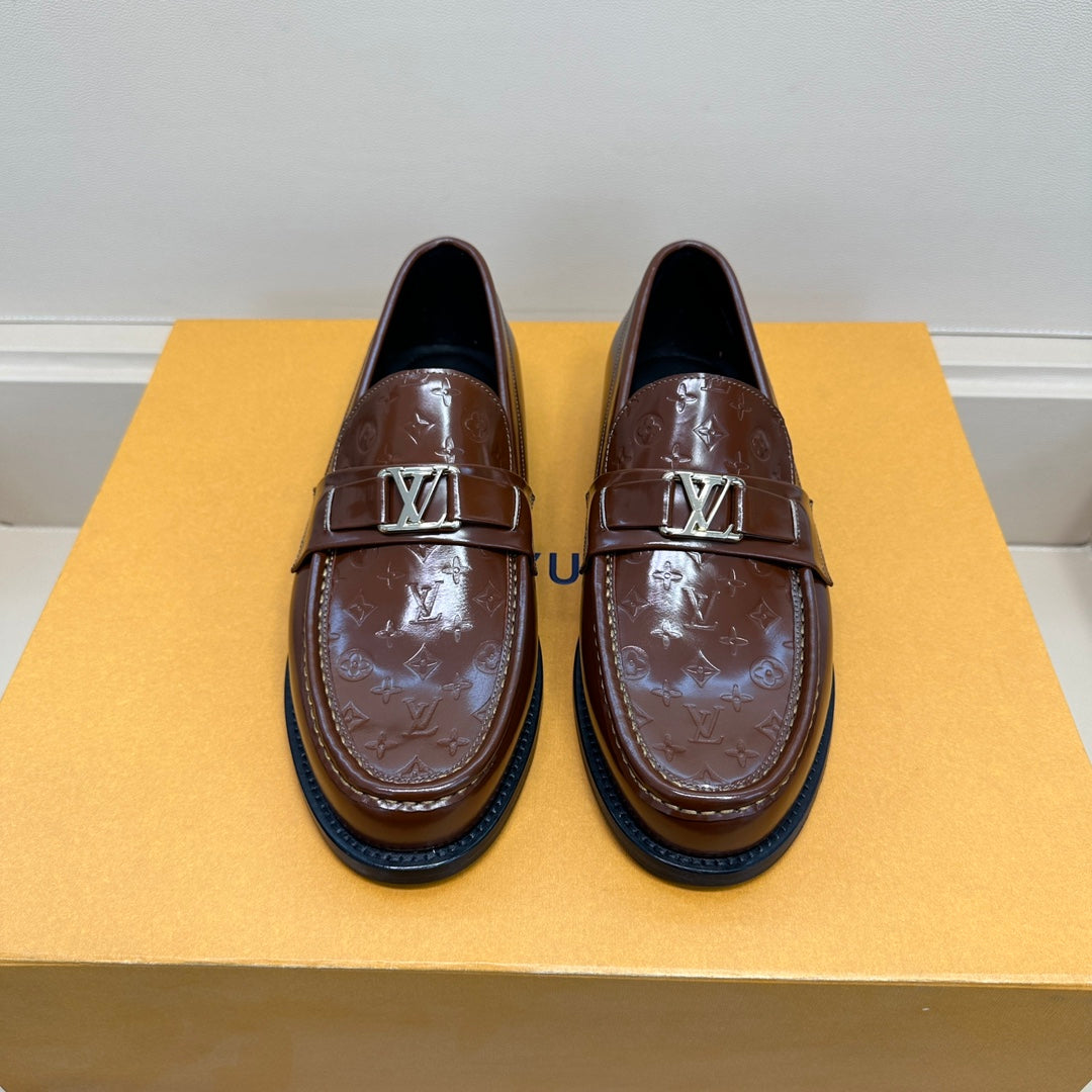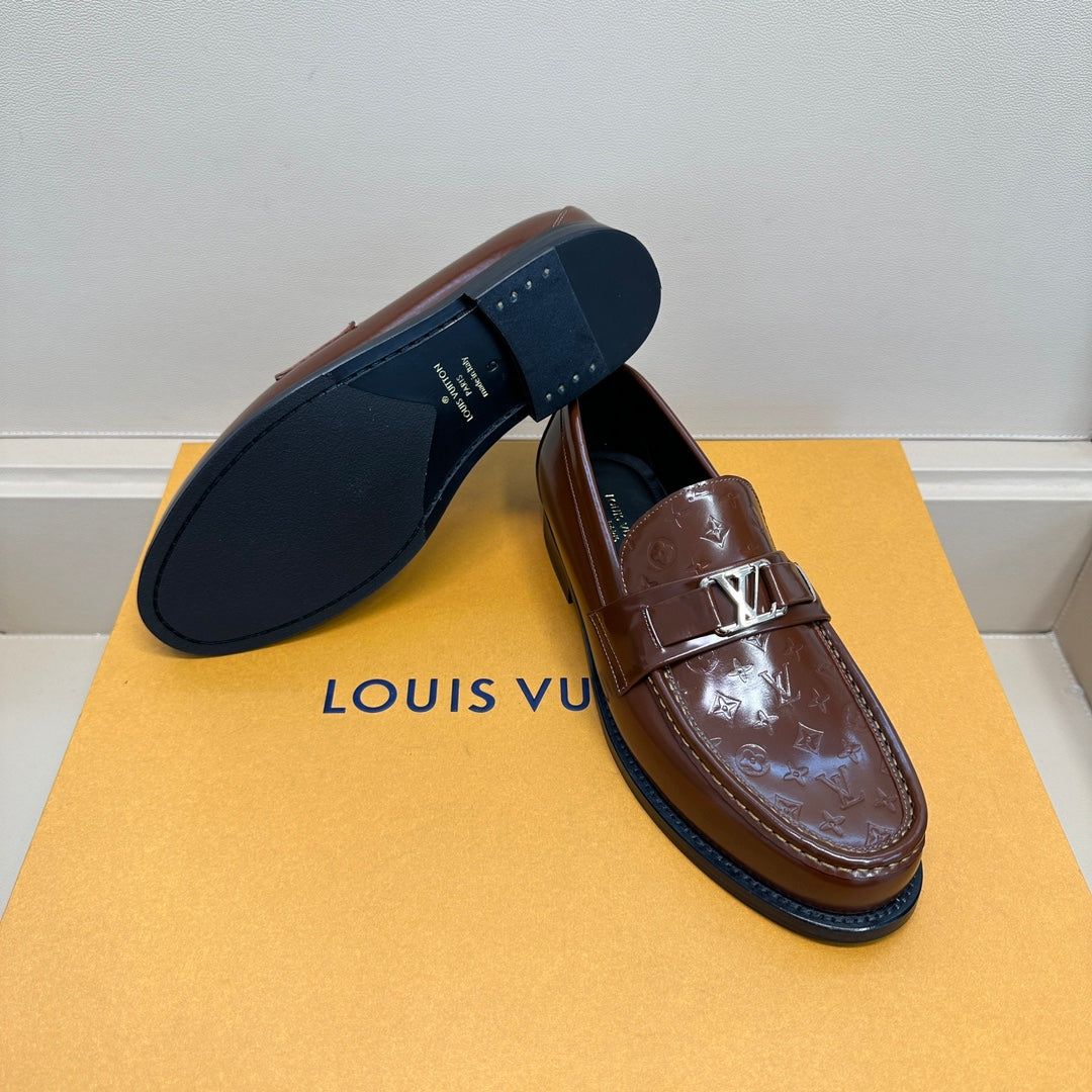 LV MAJOR LOAFER GLOSSY CHOCOLATE BROWN EMBOSSED CALFSKIN