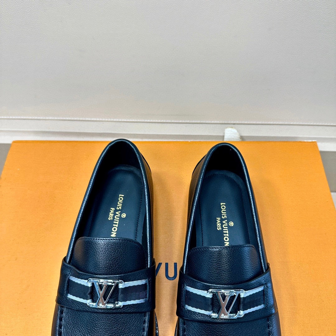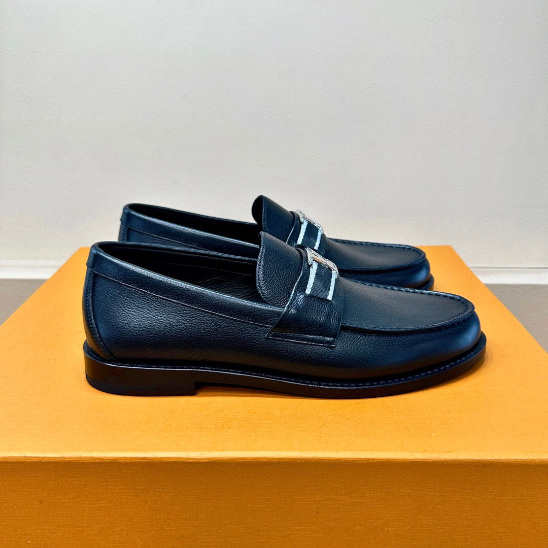 LV LOAFERS BLACK PLAIN CALFSKIN WITH MONOGRAM STRAP
