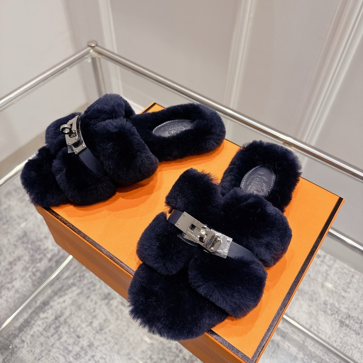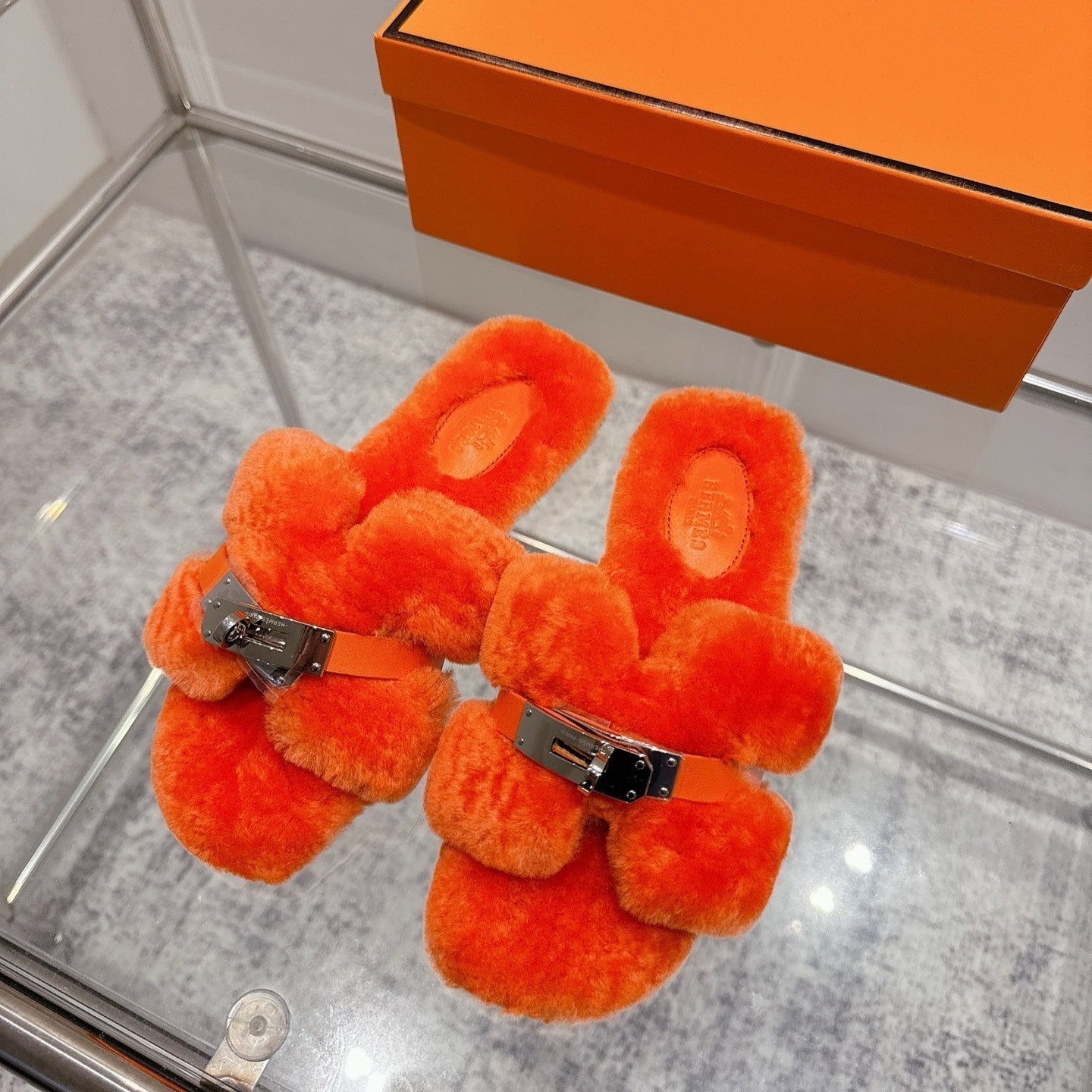 HM Oran slippers sliver buckle orange wool