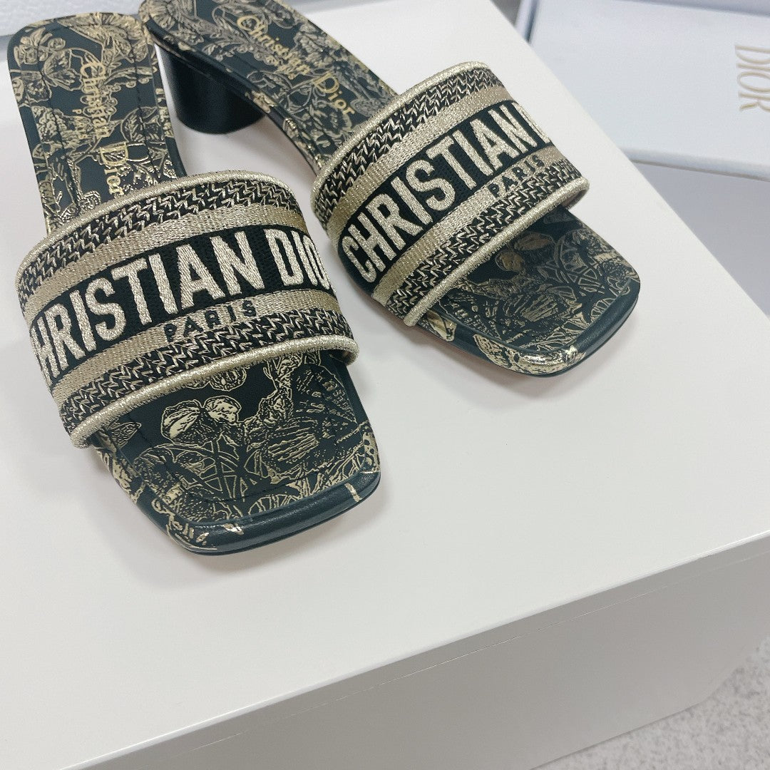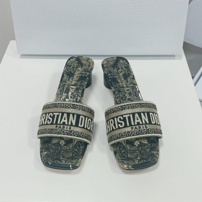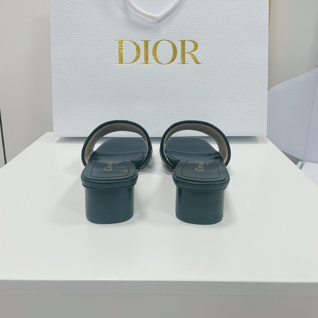 cd slide black calfskin embroidered cotton