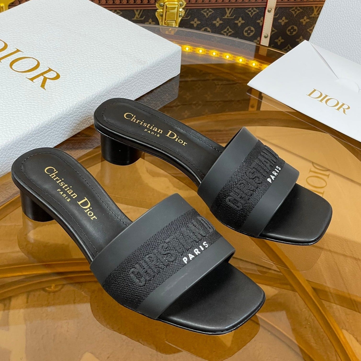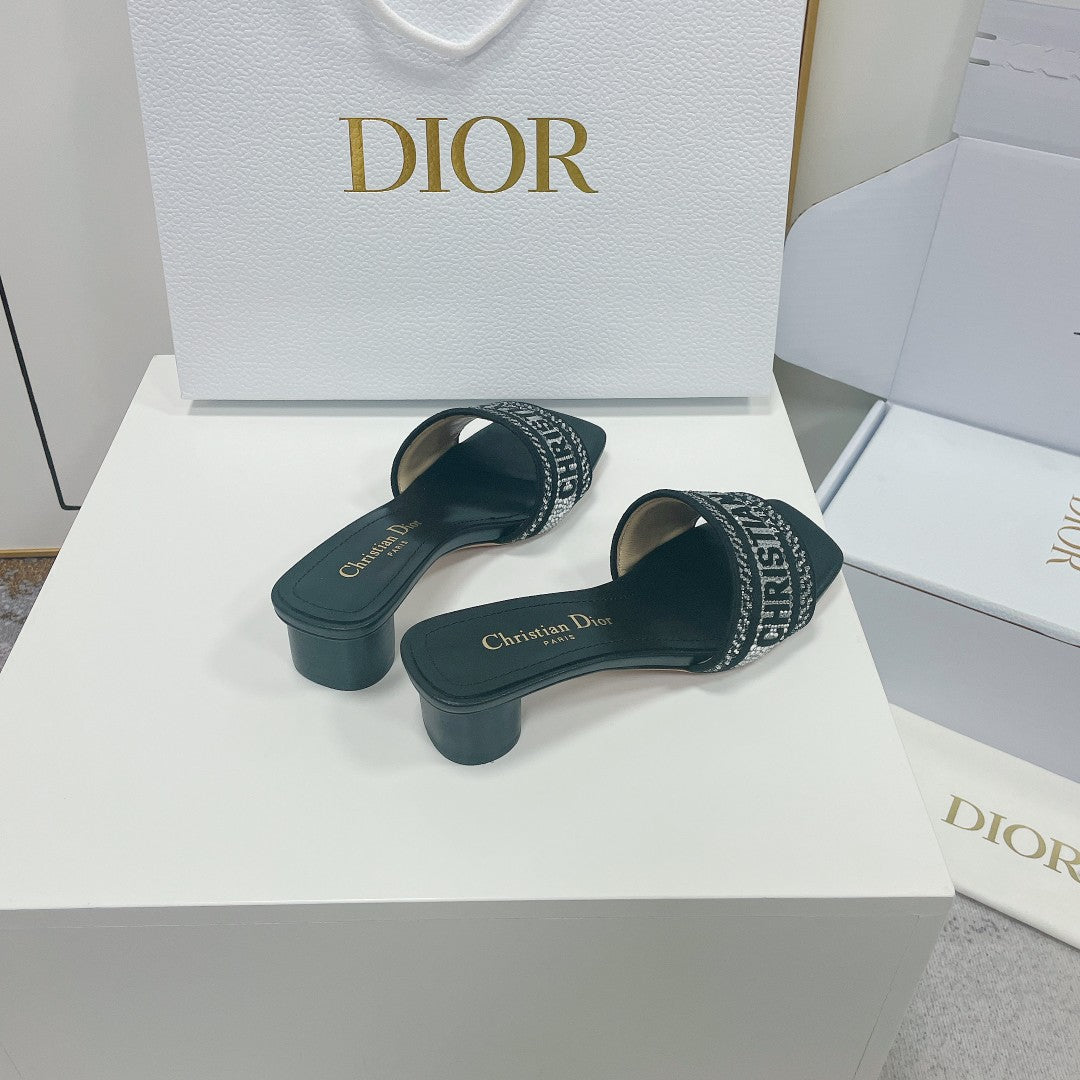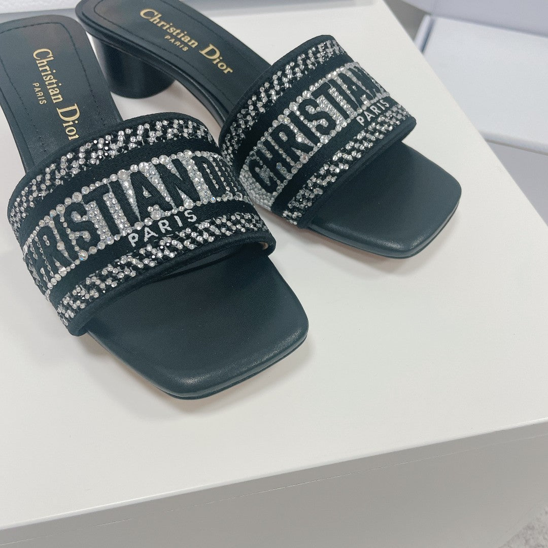 cd slide black calfskin embroidered cotton