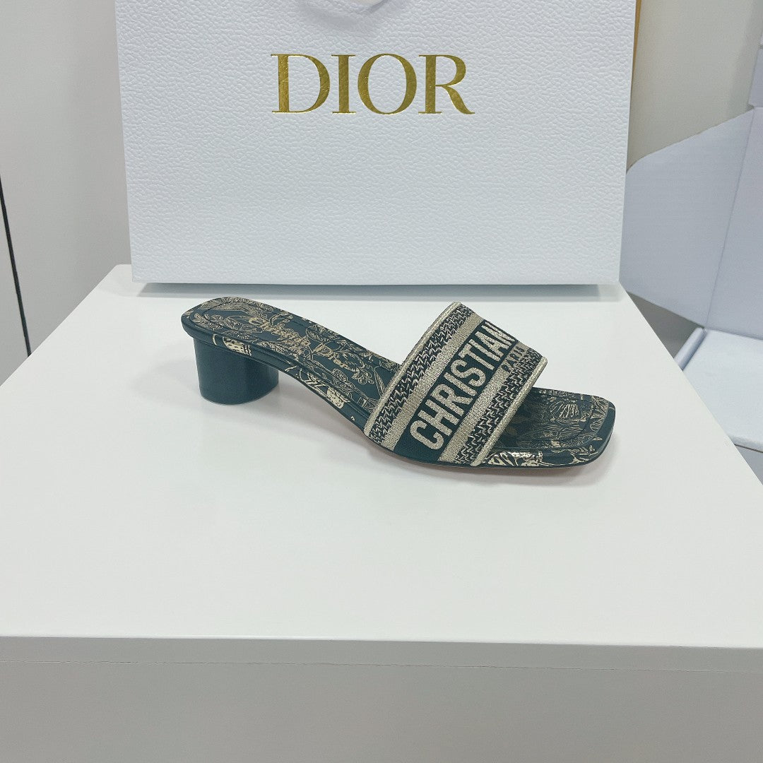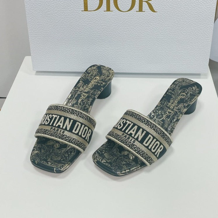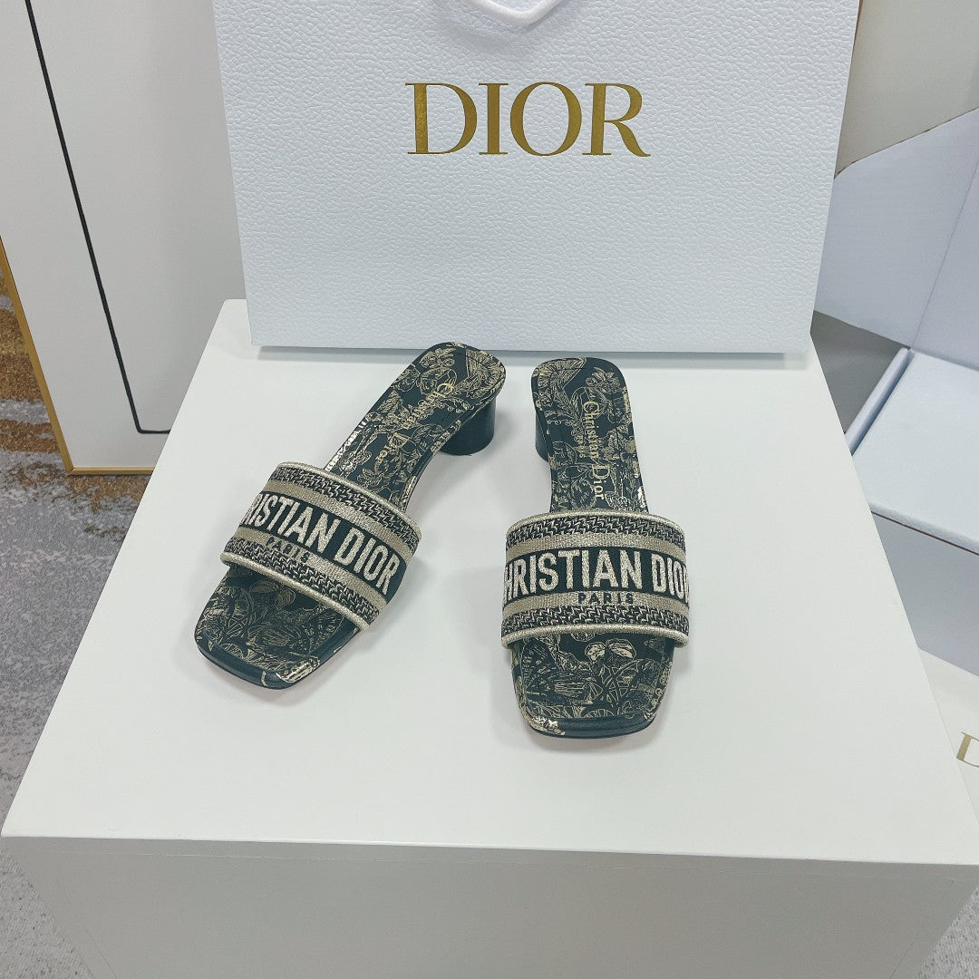 cd slide 45 beige calfskin embroidered cotton