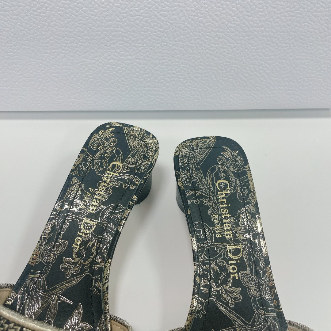 cd slide beige calfskin embroidered cotton