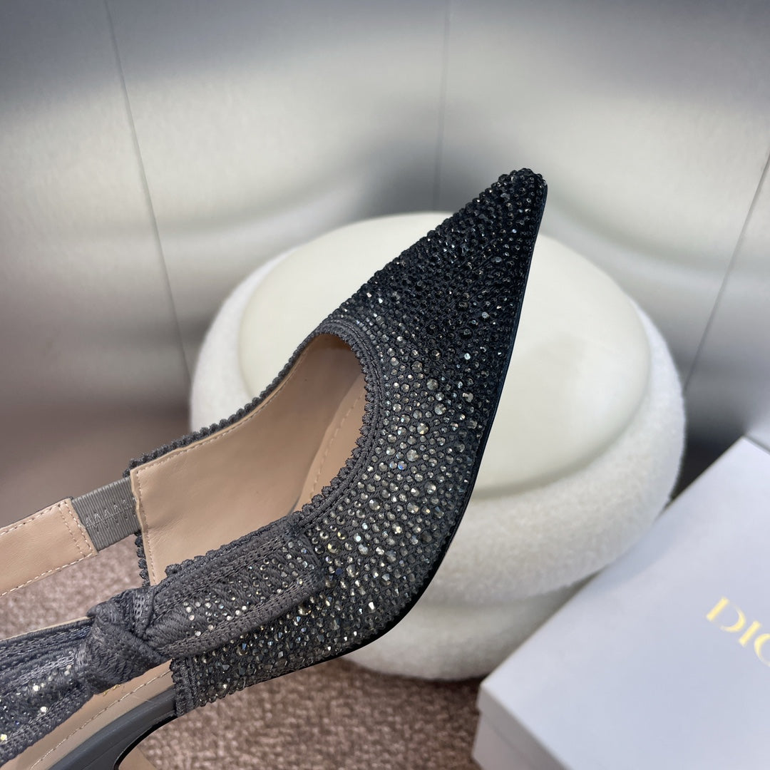 cd slingback pumps 95 black embroidered cotton