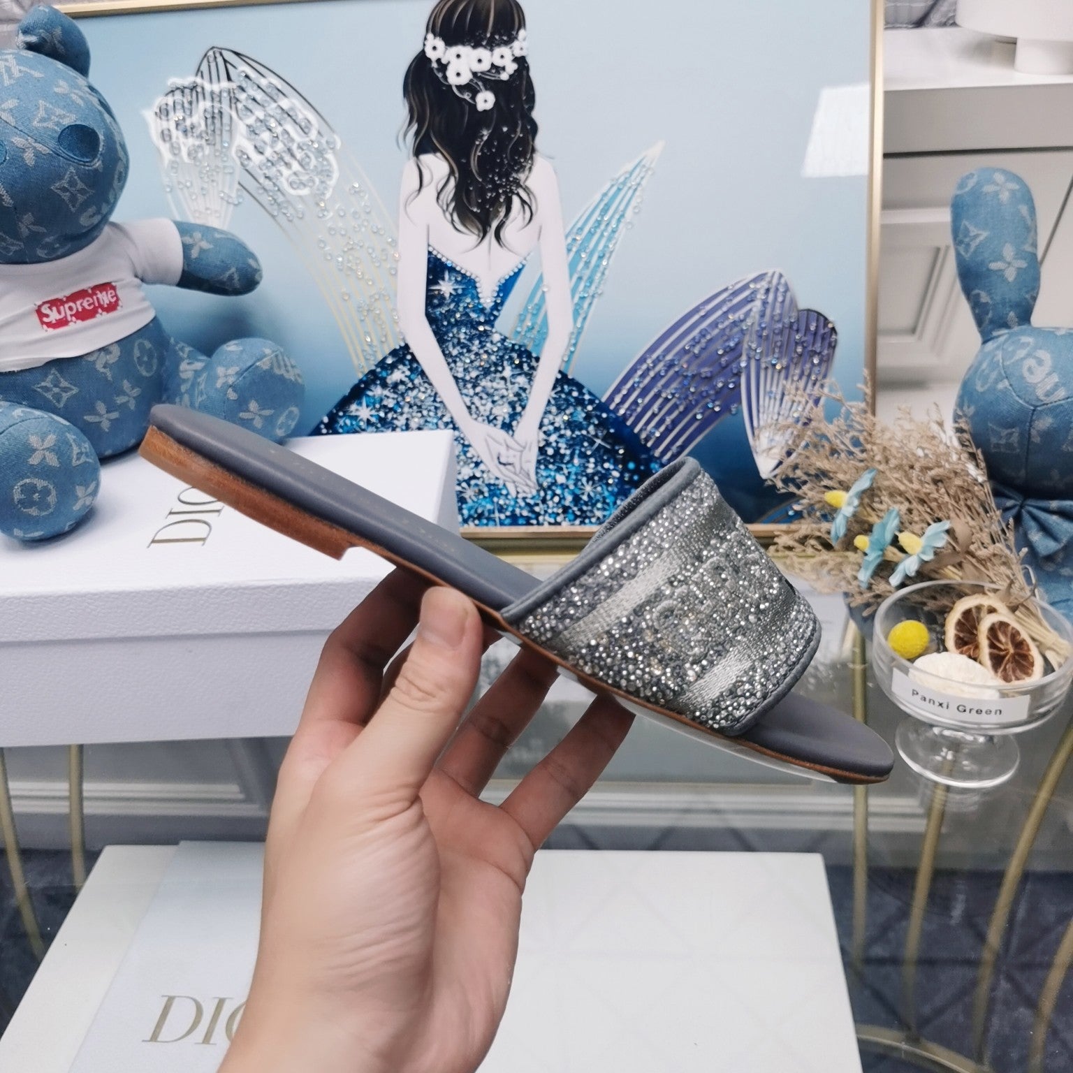 JAdior slingback flat transparent mesh grey embroidered cotton