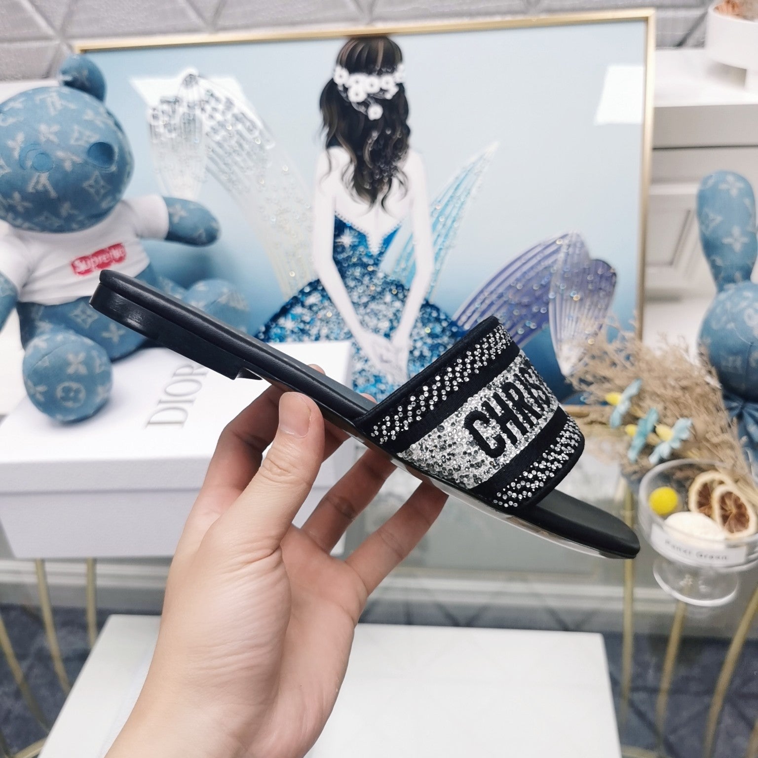 JAdior slingback flat full transparent mesh black embroidered cotton