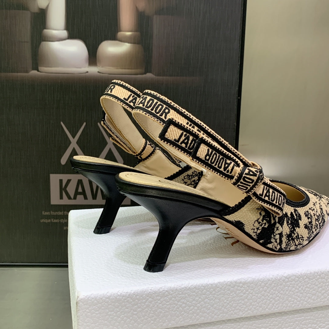 JAdior Slingback Pump 65 White and Gold-Tone Toile de Jouy Mexico Embroidered Cotton with Metallic Thread