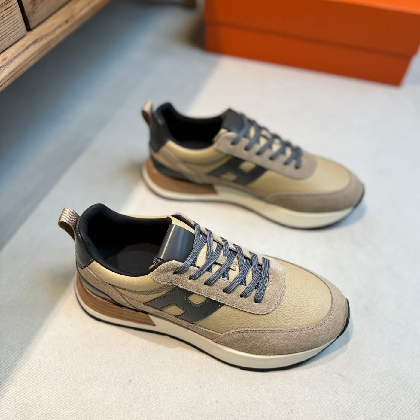 HM INTERACTIVE LACE-UP SNEAKER BEIGE CALFSKIN