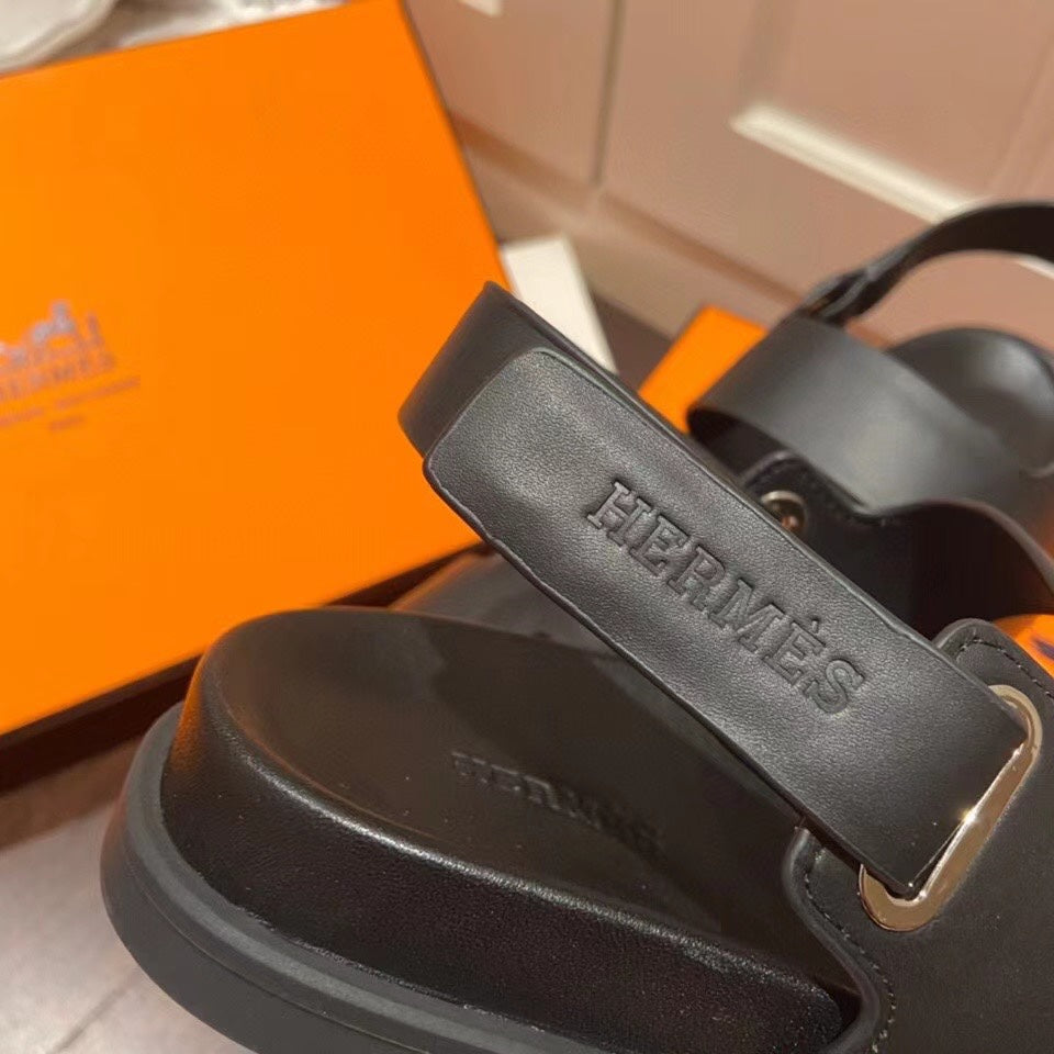 HM HENRIO FLAT SANDAL BLACK CALFSKIN
