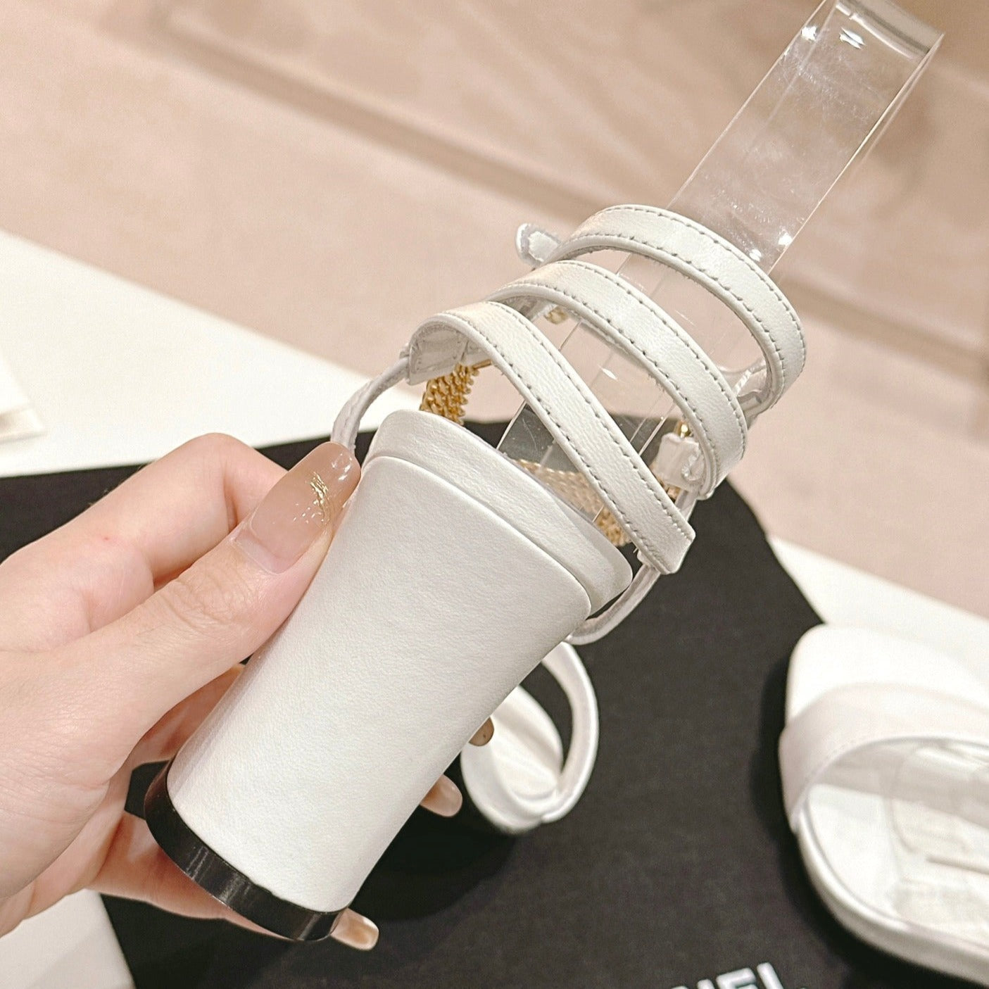 cc mule leather chain beige calfskin black patent calfskin