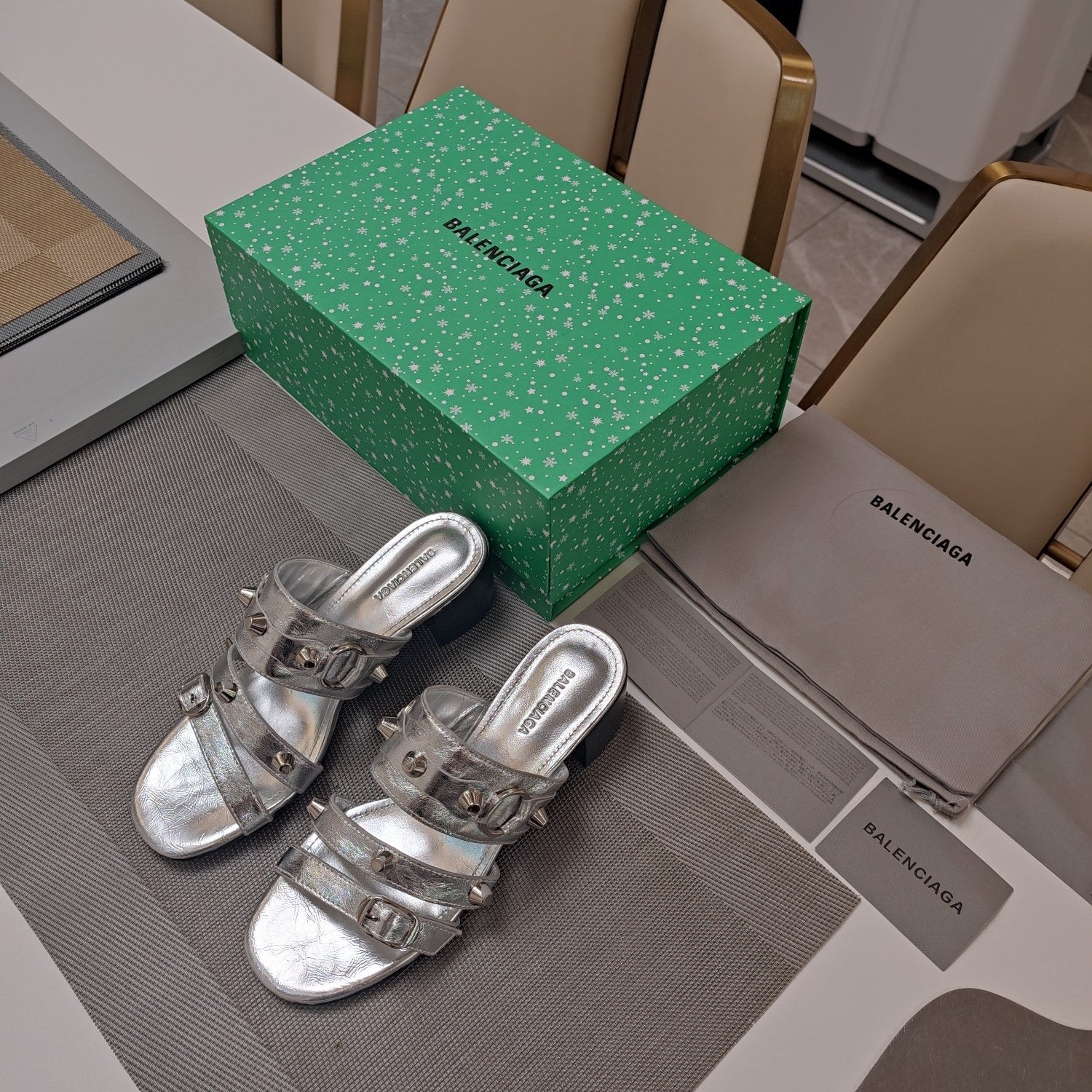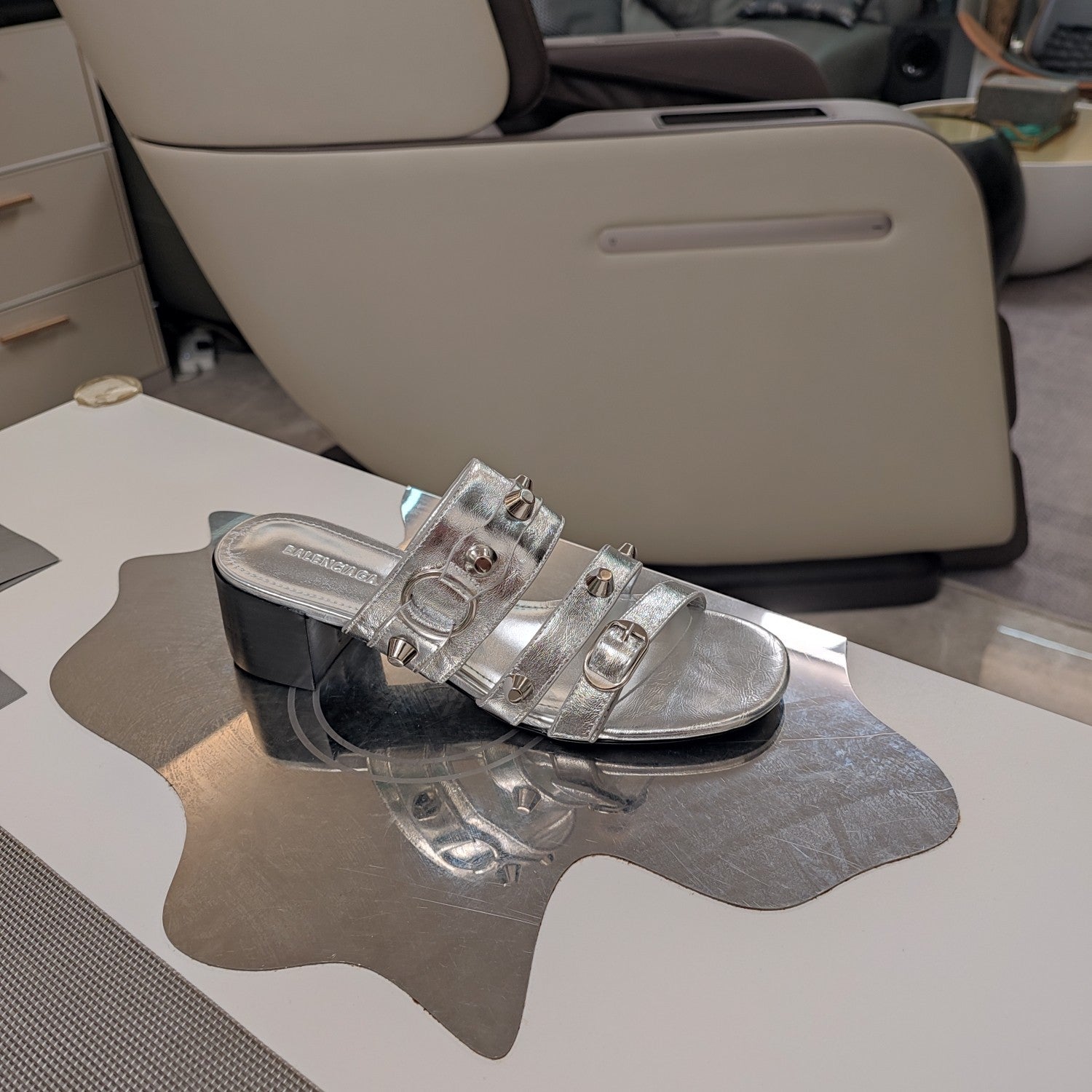 CAGOLE POINTED HIGH MULES IN SILVER SHINY CALFSKIN