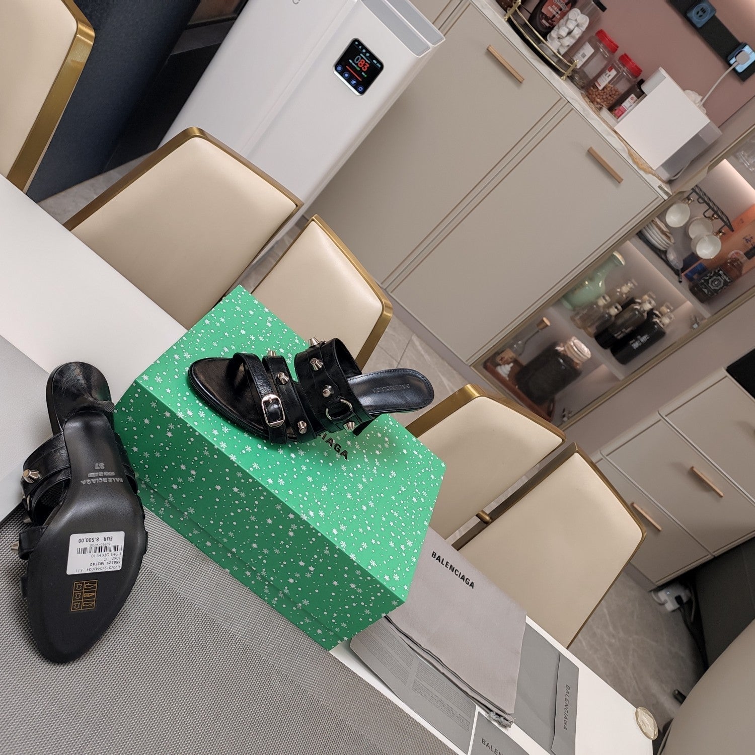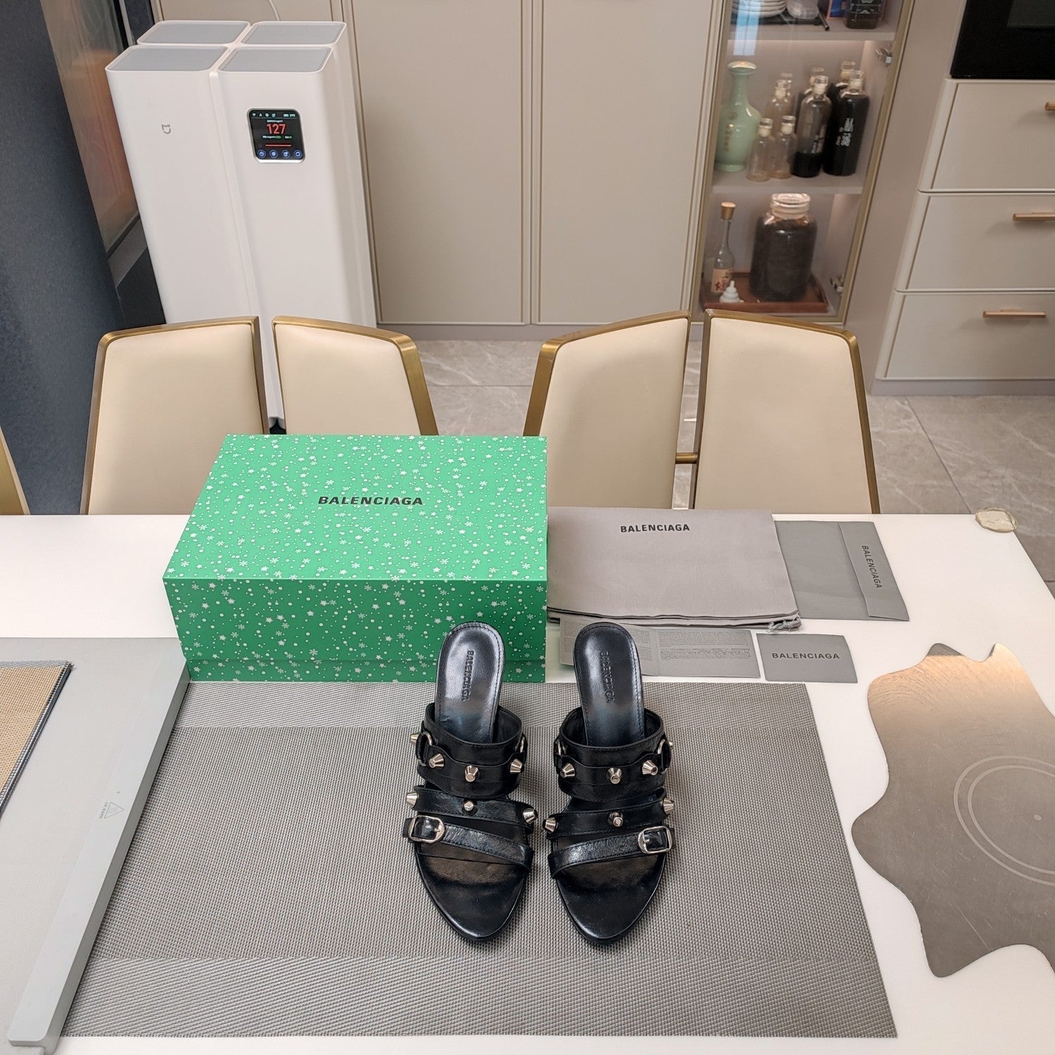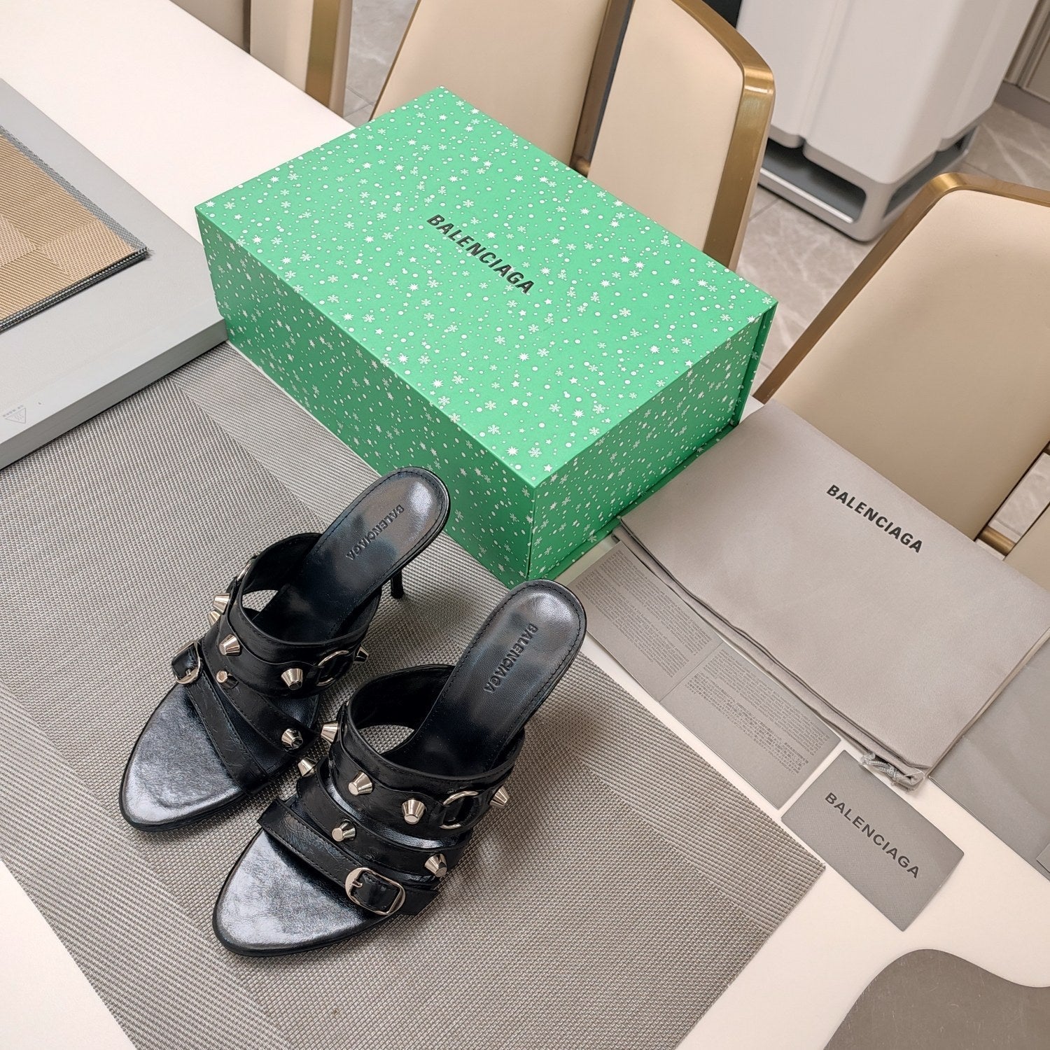 CAGOLE POINTED HIGH MULES IN BLACK SHINY CALFSKIN