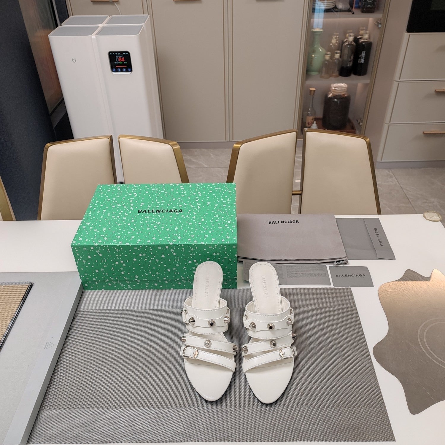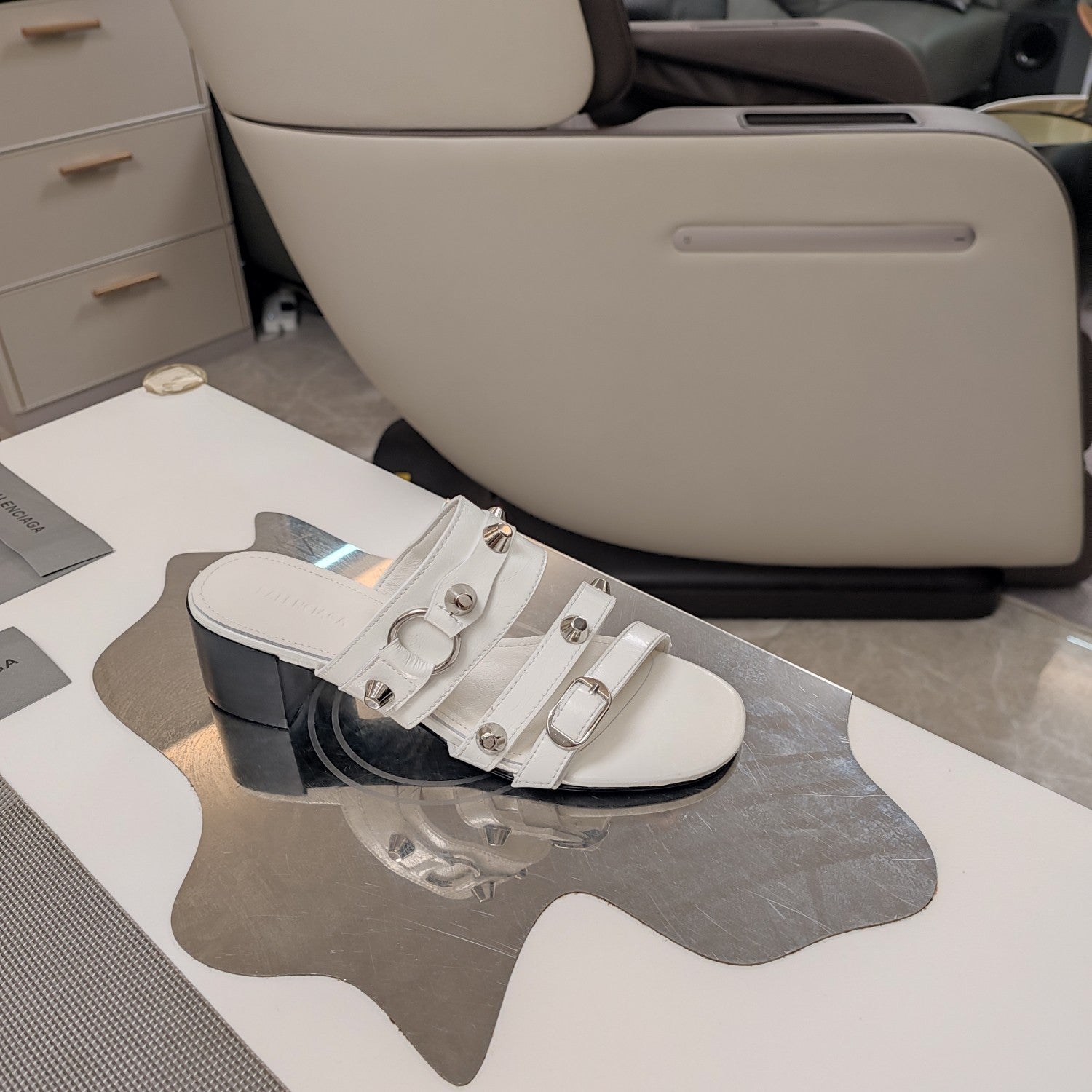 CAGOLE POINTED HIGH MULES IN WHITE SHINY CALFSKIN