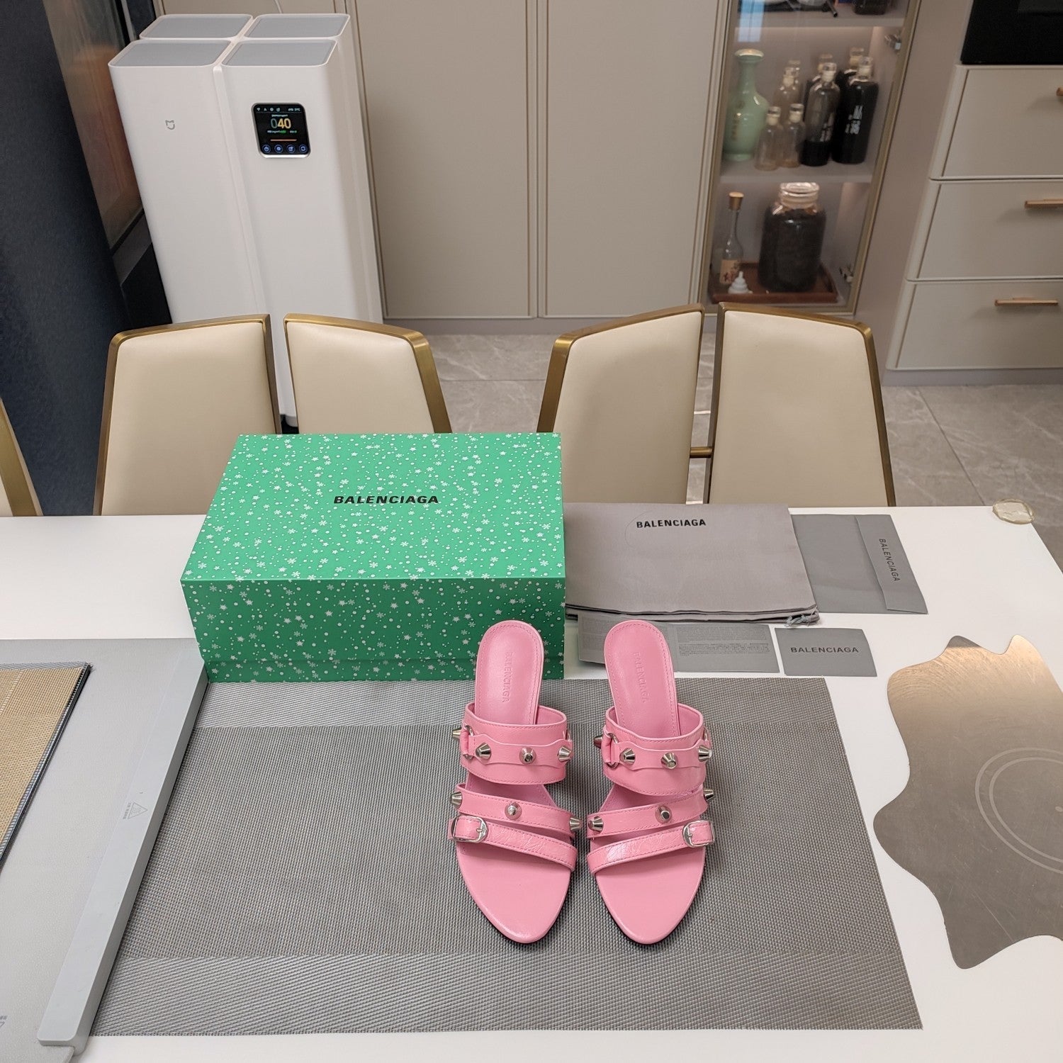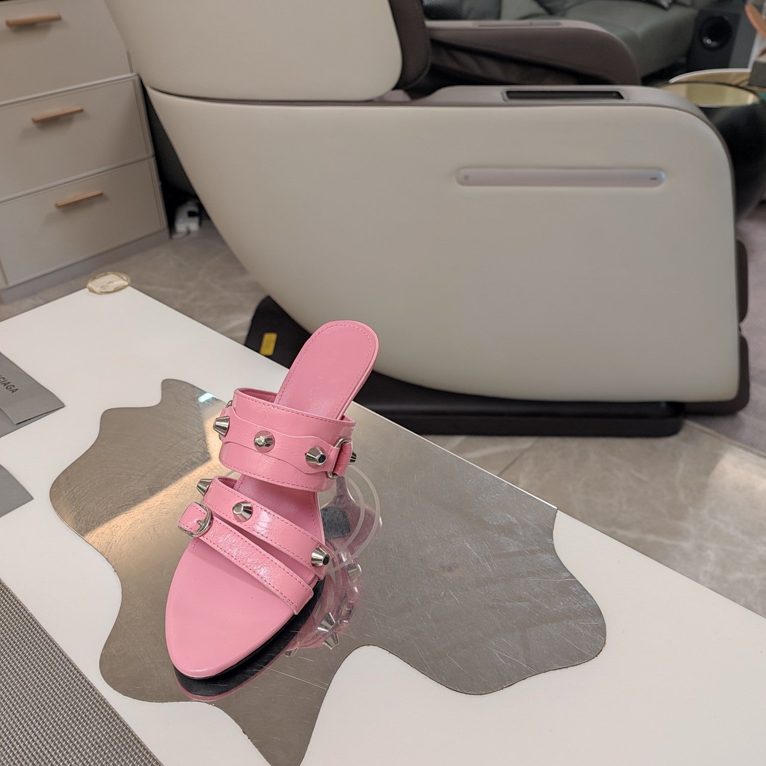CAGOLE POINTED HIGH MULES IN ROMAN PINK SHINY CALFSKIN
