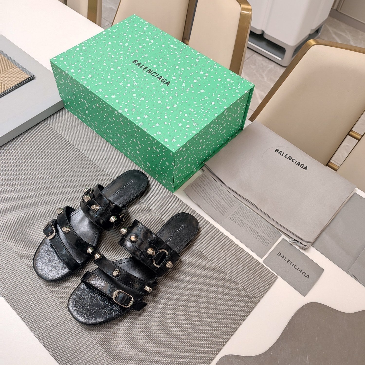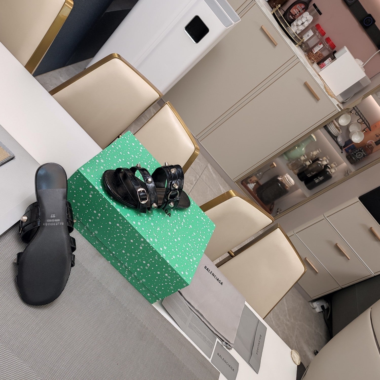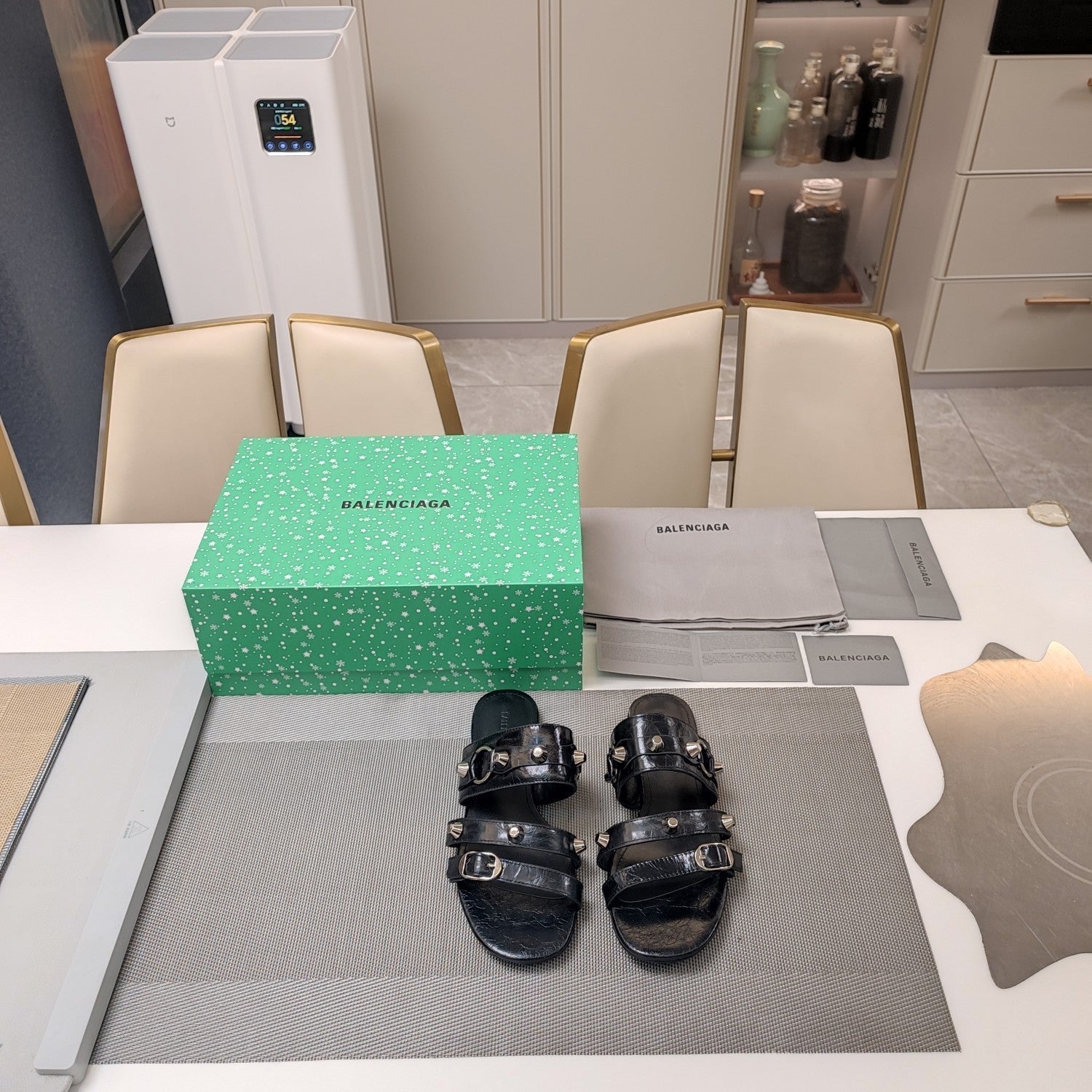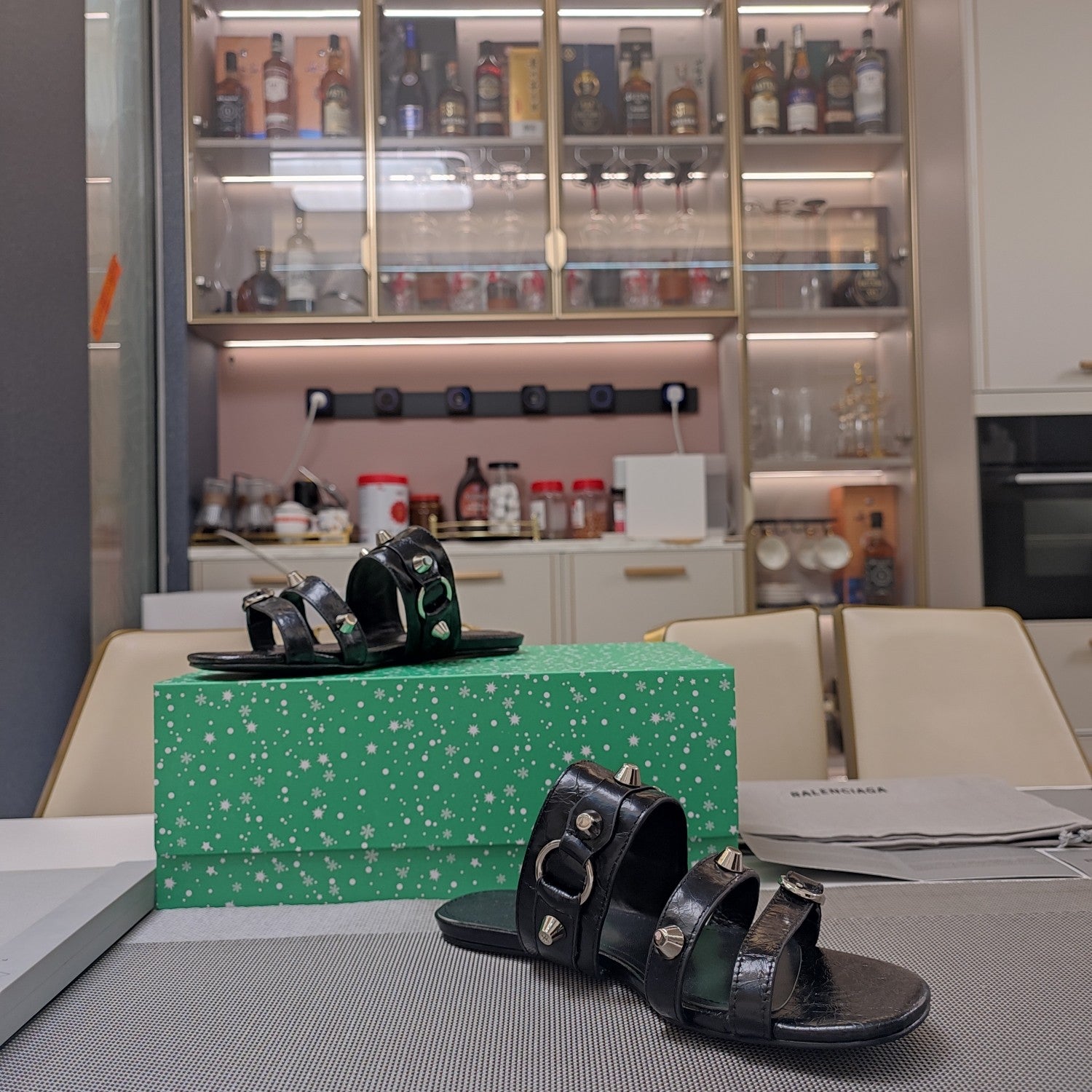 STRAPPY FLAT SANDALS IN BLACK STUDDED WAX-OIL SHEEPSKIN