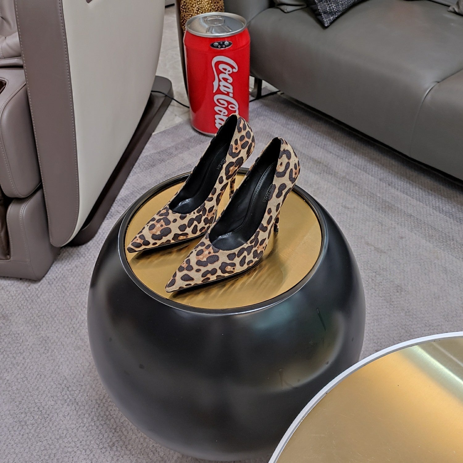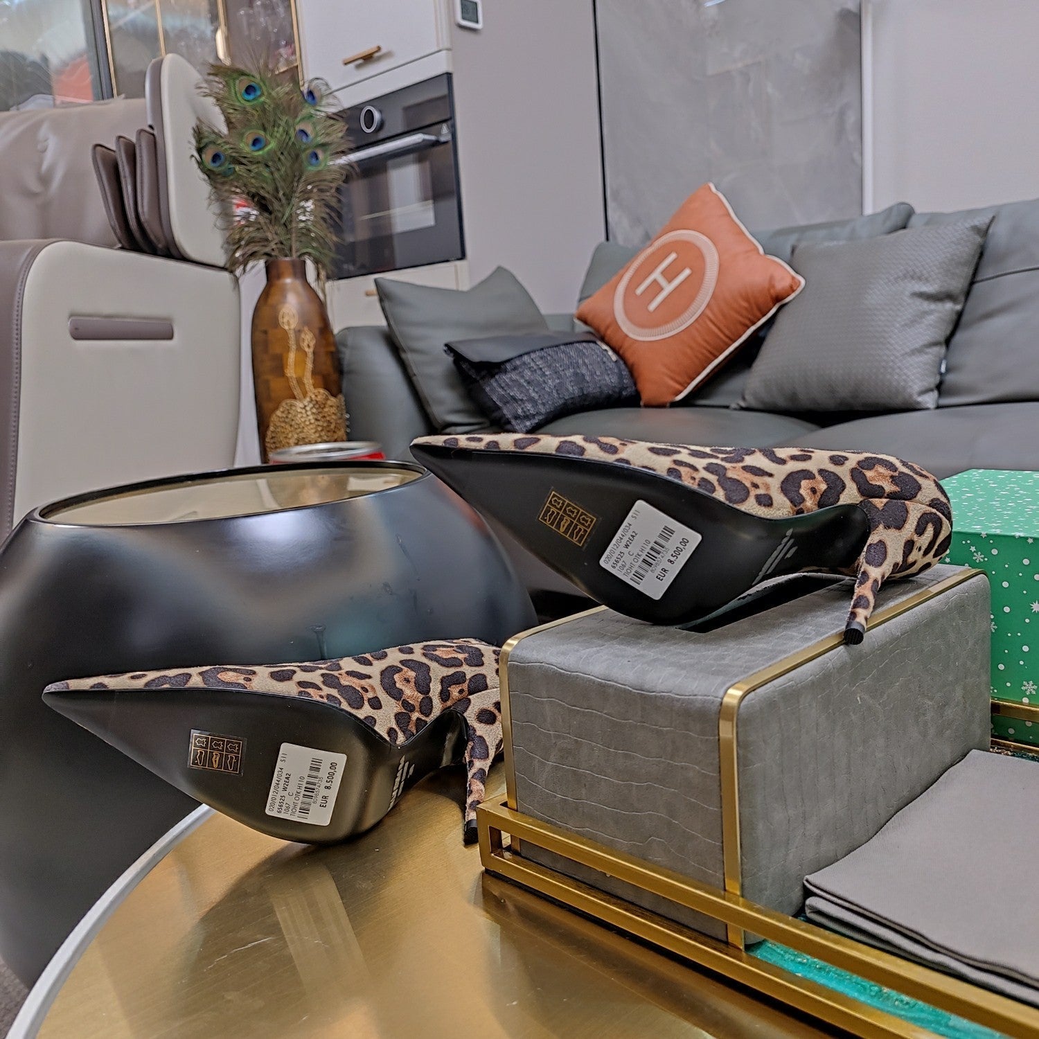 HIGH PUMPS IN LIGHT GRAY LEOPARD PRINT SUEDE
