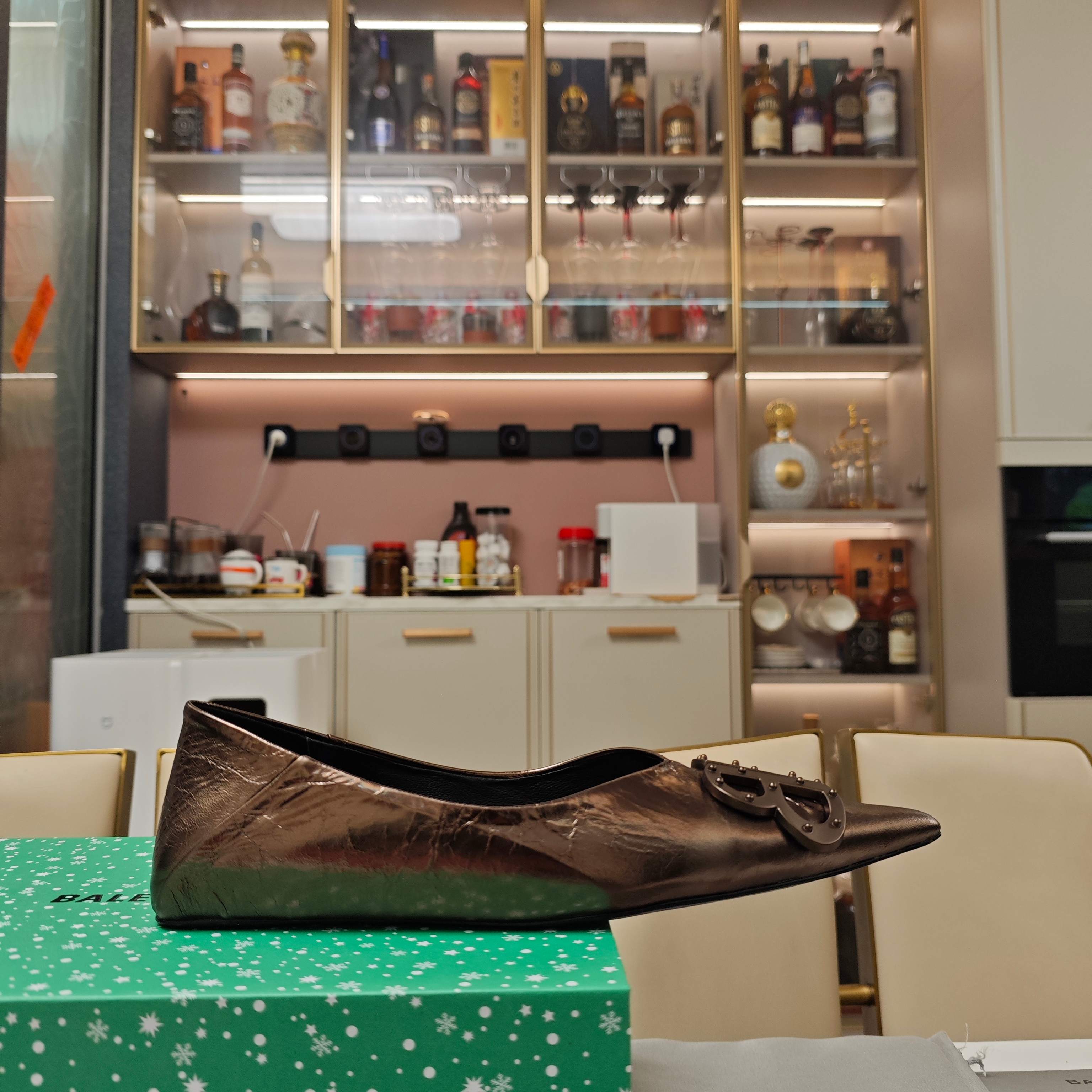 POINTED BB GOLD BUCKLE BALLET FLAT IN GOLD METALLIC SHINY CALFSKIN