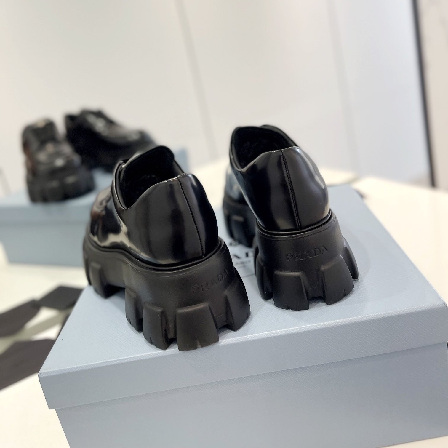 MONOLITH LACE-UP LOAFER IN BLACK GLOSSY CALFSKIN ATTACHED TRIANGLE LOGO