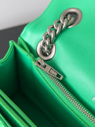 CRUSH CHAINED BAG 25 IN GREEN QUILTED CRUSHED CALFSKIN SILVER HARDWARE
