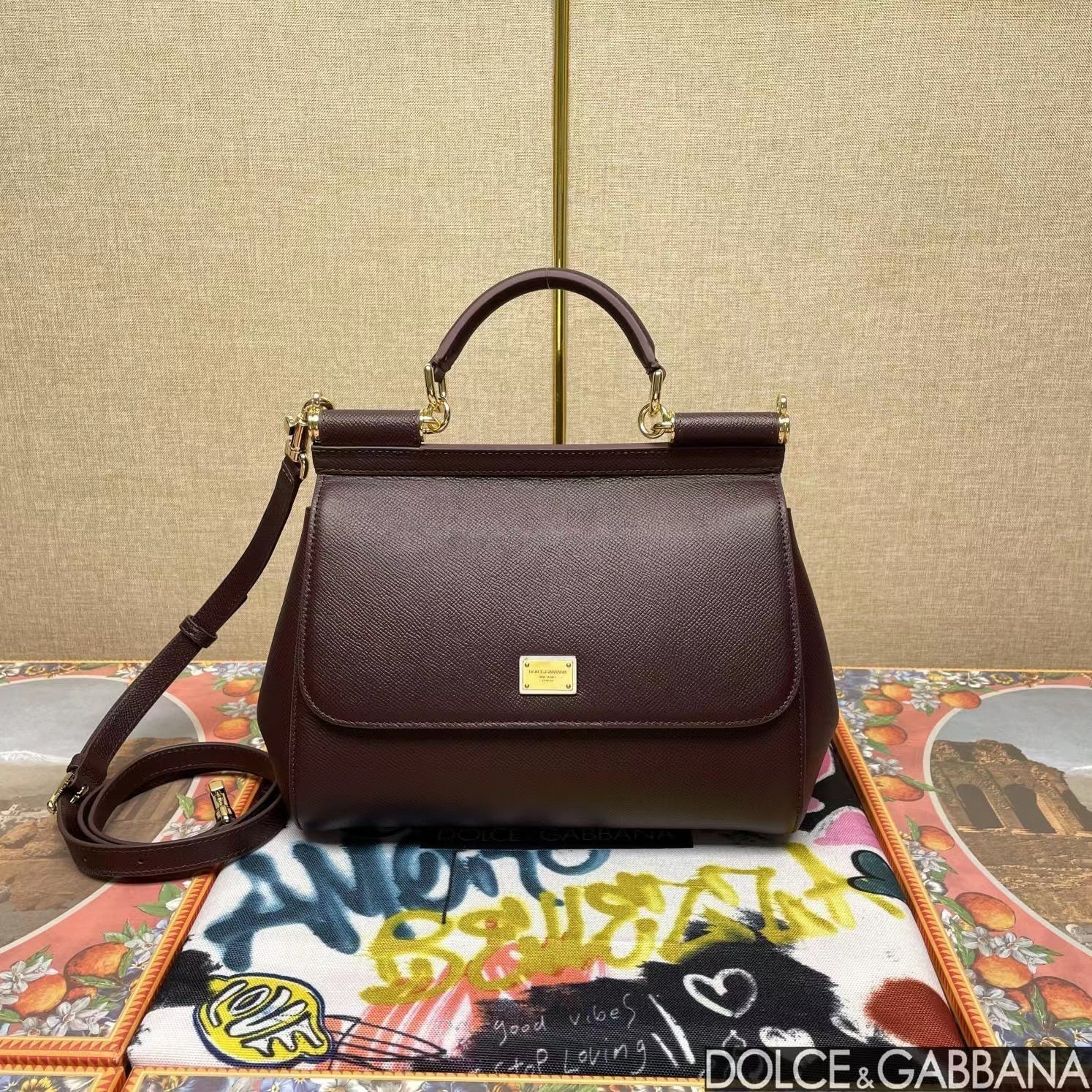 MEDIUM SICILY HANDBAG 26 IN DAUPHINE LEATHER BORDEAUX