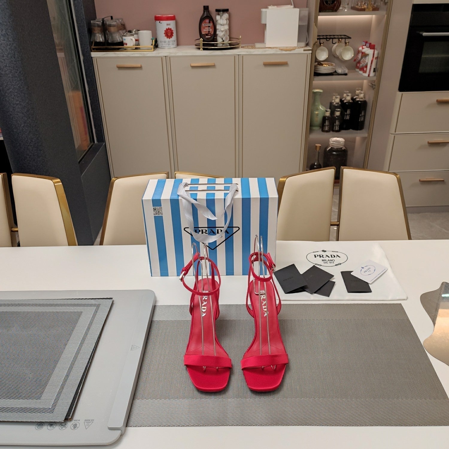 PRA HIGH-HEELED SANDALS RED SATIN
