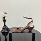 PRA TRIANGLE HEEL FLOWER MOTIF SATIN SANDALS CINNAMON