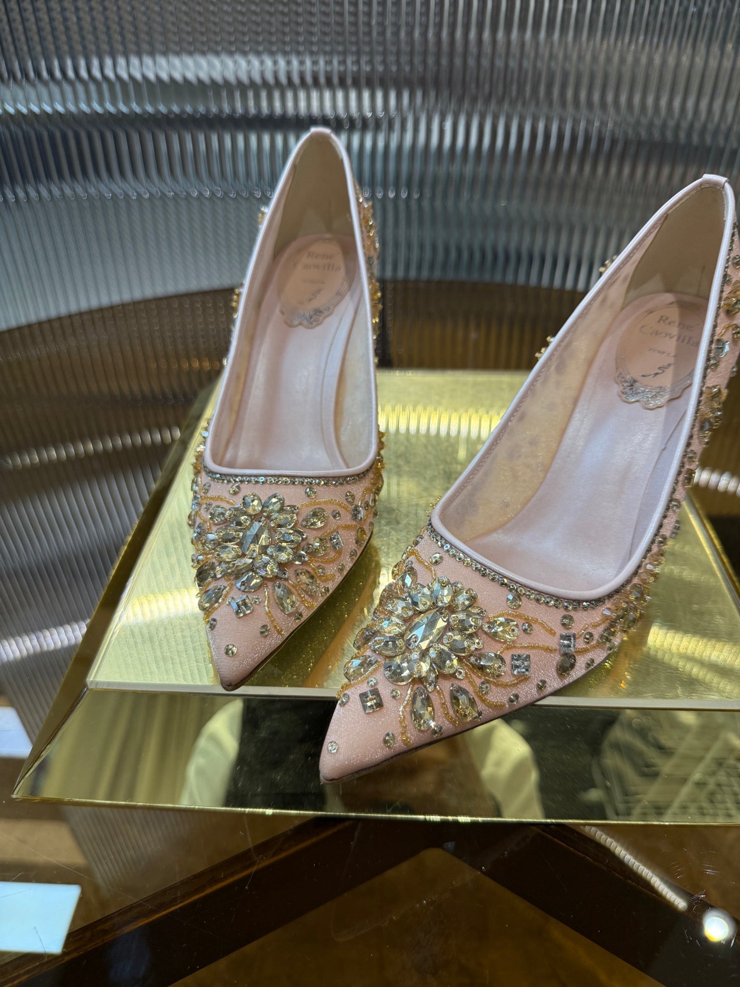 RC 25C Diamond High Heels Wedding Shoes Pink Sheepskin Rhinestone 275791
