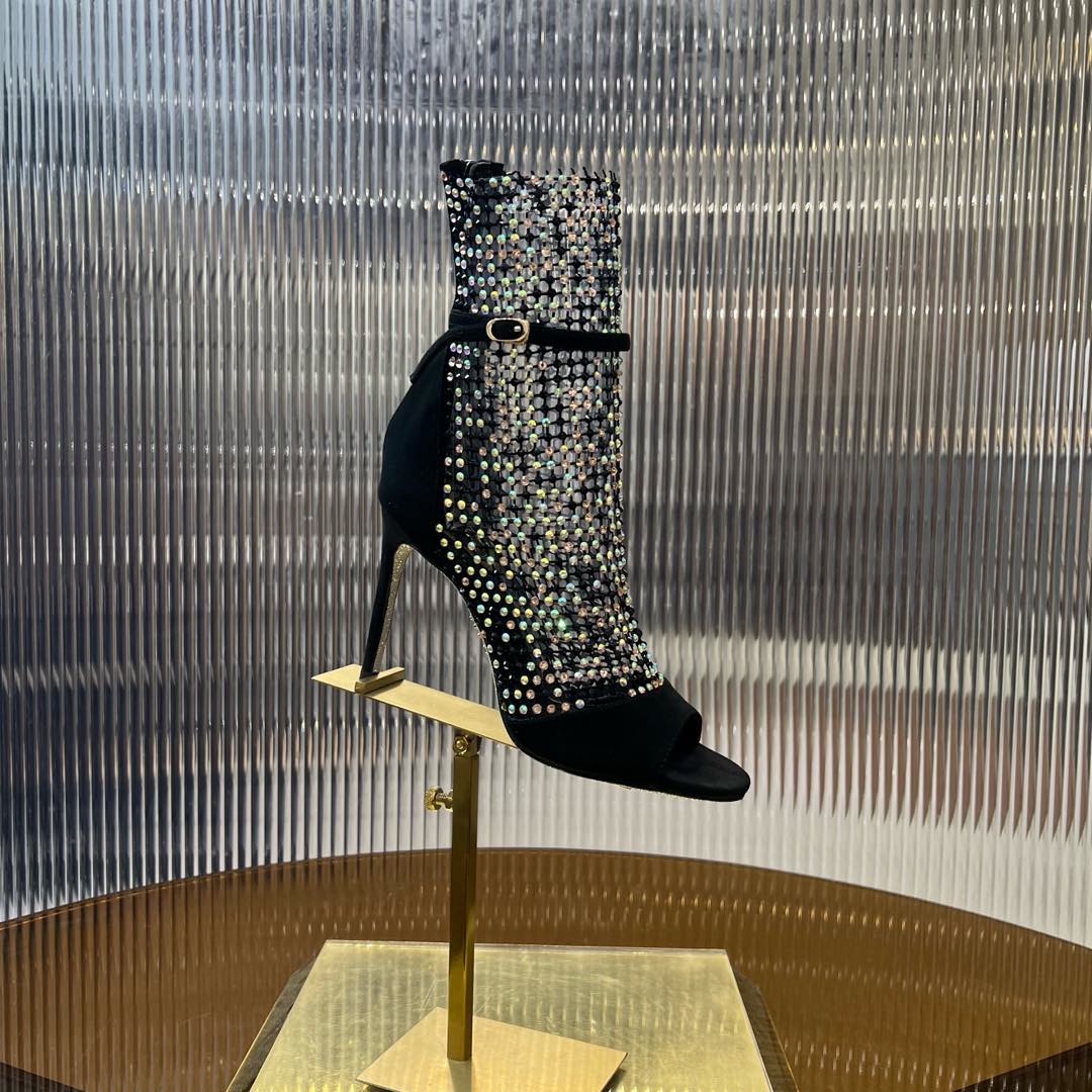 RC 25C High Heel Short Boots Mid-Tube Open-Toe Sandals Black Sheepskin 174961