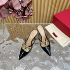 Vlogo Signature with Crystals Cut-Out Slingback Pump 70 Black Beige Calfskin