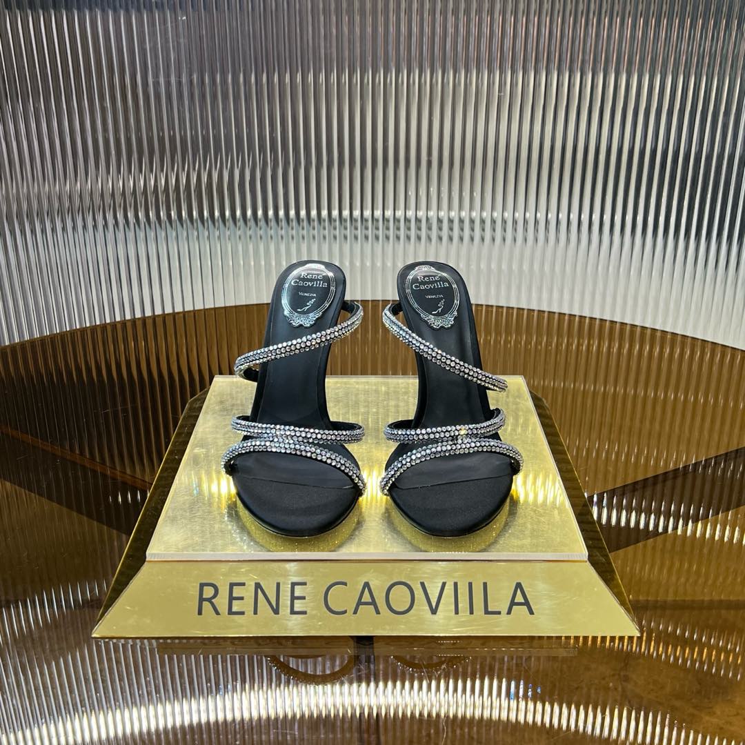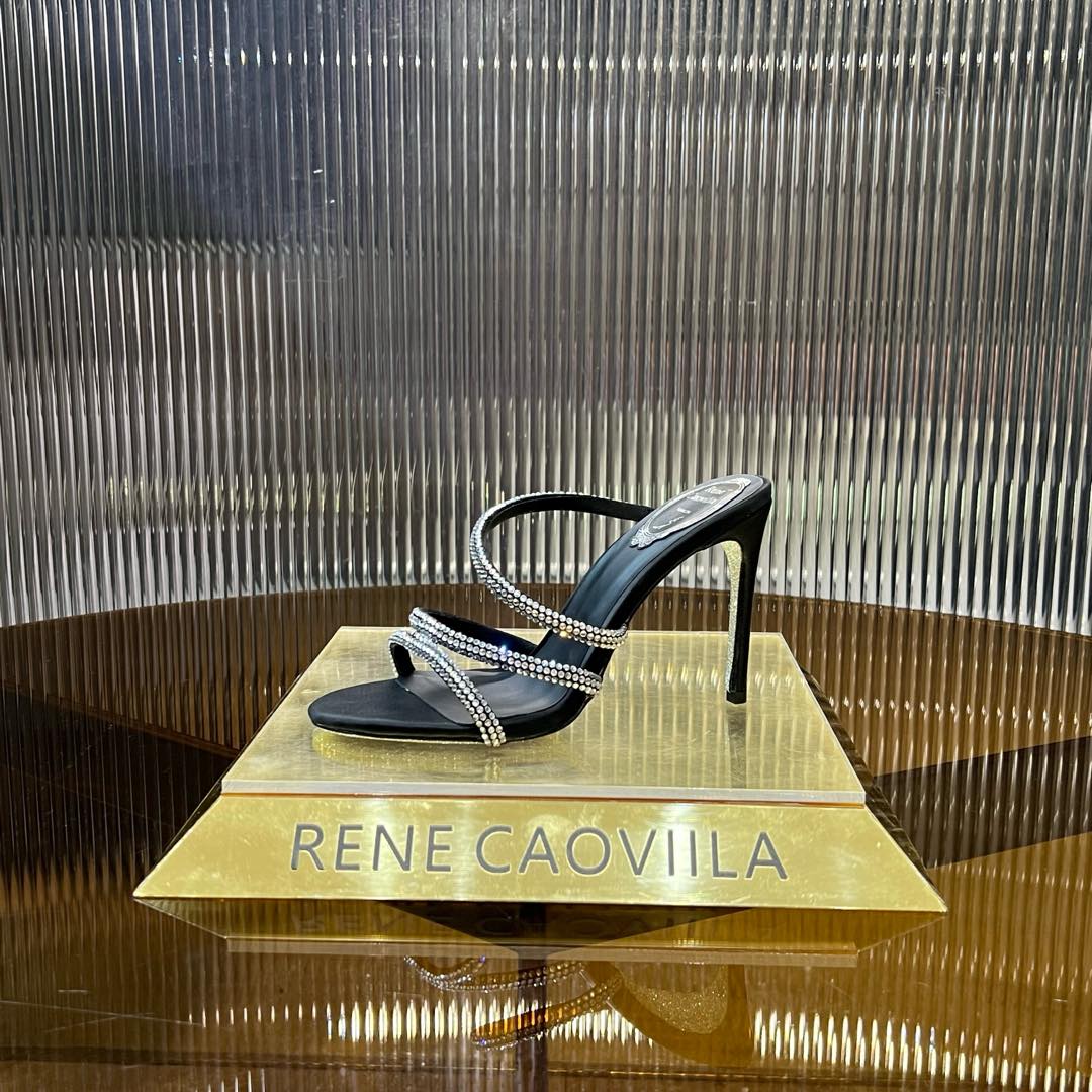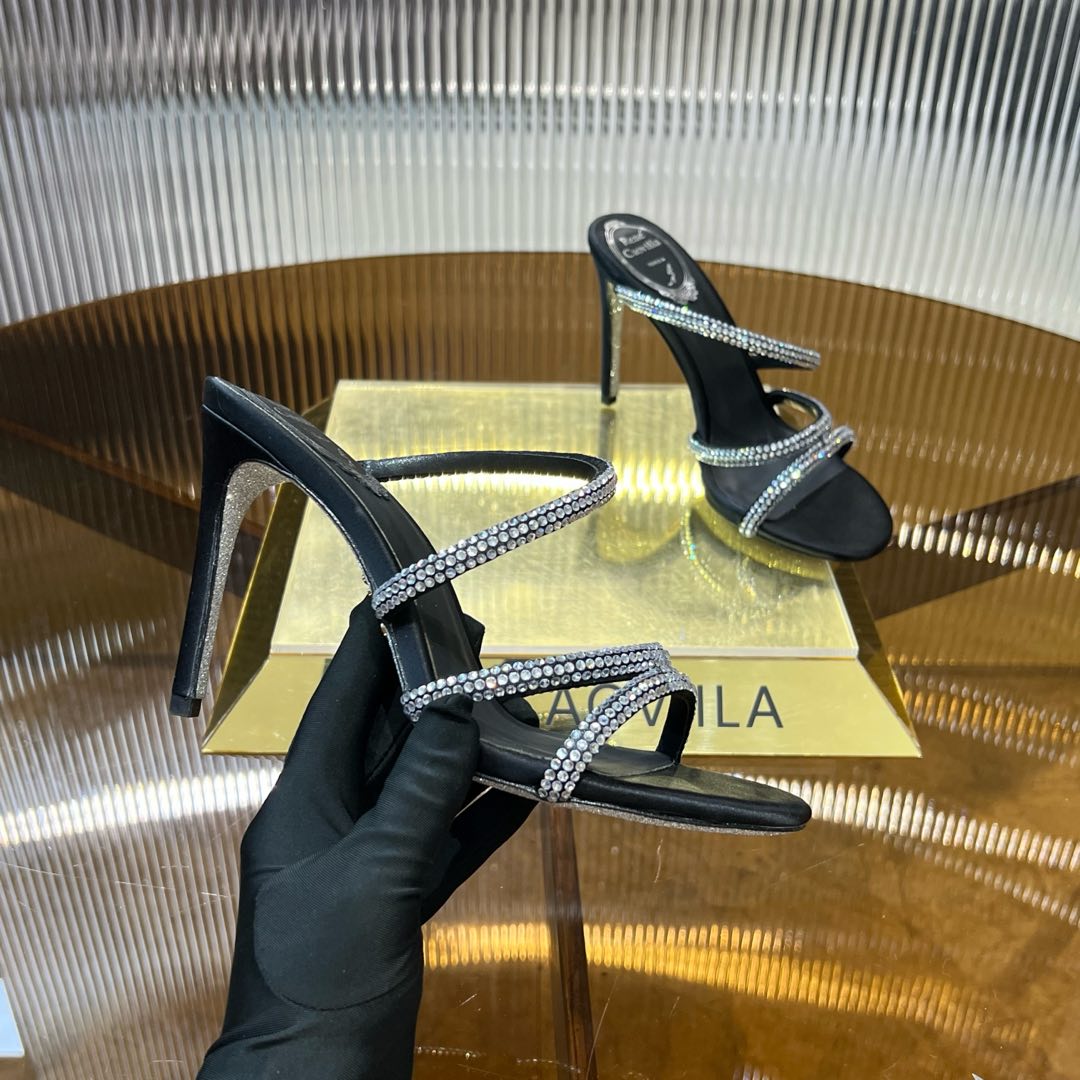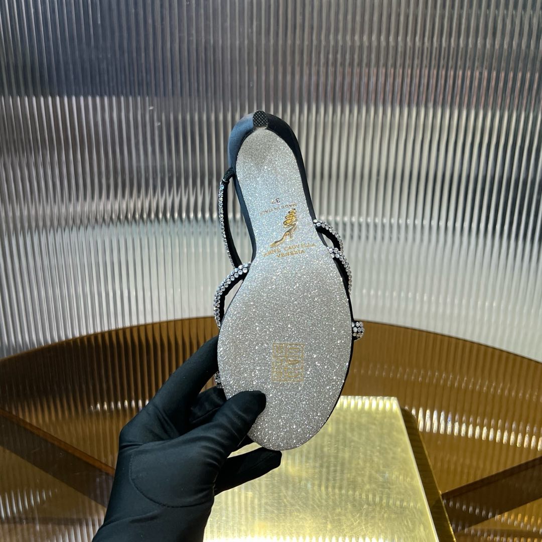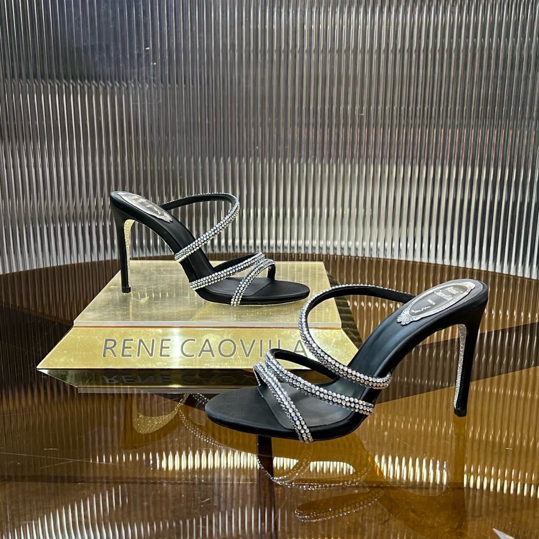RC 25C Flower-Studded Diamond High-Heeled Sandals Black Sheepskin 174909