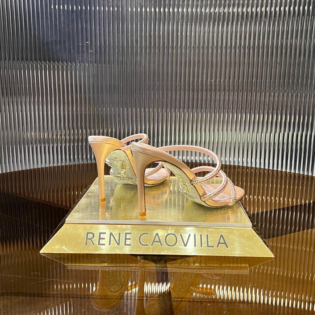 RC 25C Flower-Studded Diamond High-Heeled Sandals Beige Sheepskin 174917